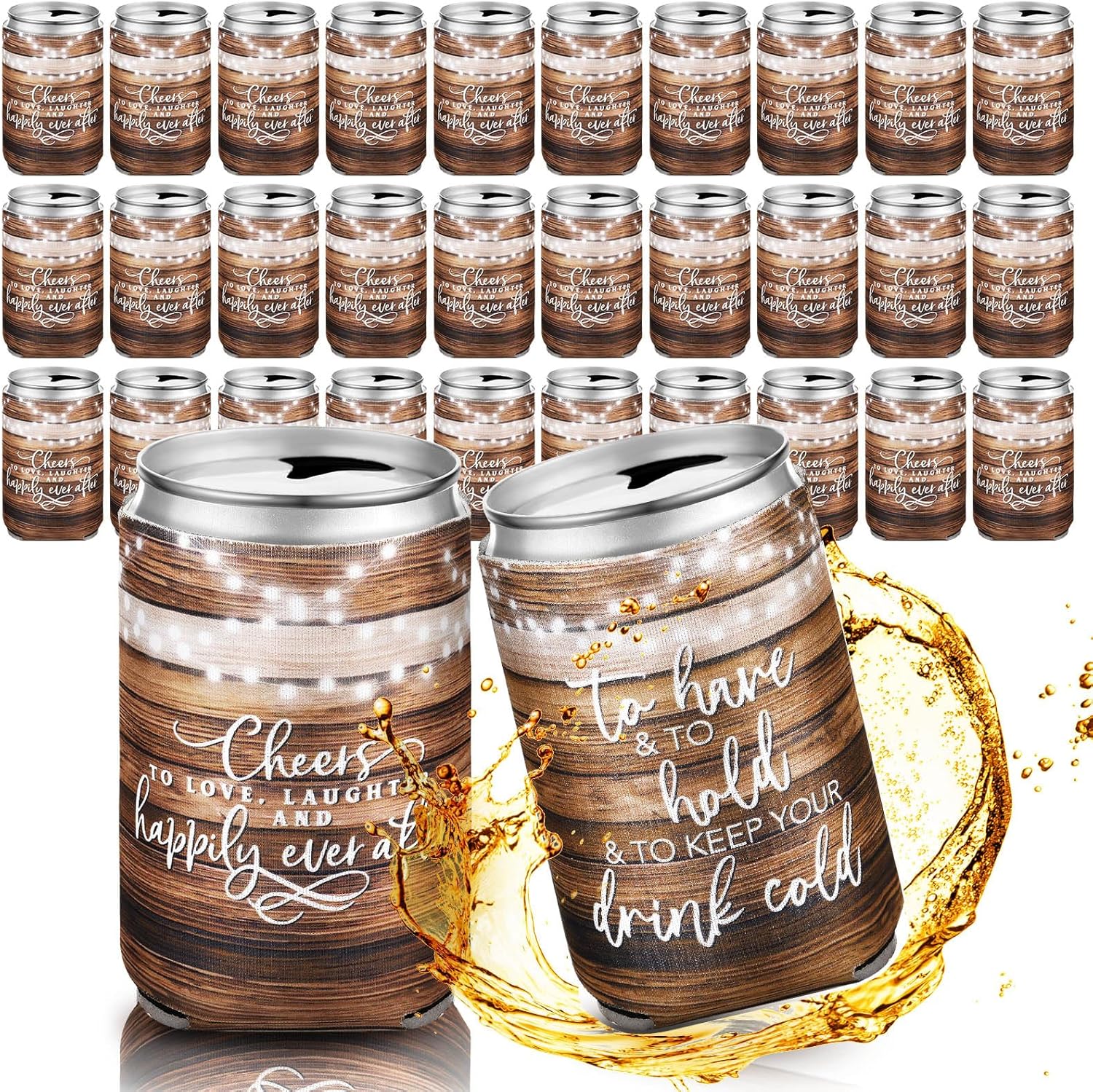 - Satisfying Party Package: our huge package containing 50 pieces of wedding can cooler decorations; Make every drink a celebration with our wood grain and white can coolers; They are suited to uplift the atmosphere at weddings, bridal showers, and bachelorette parties