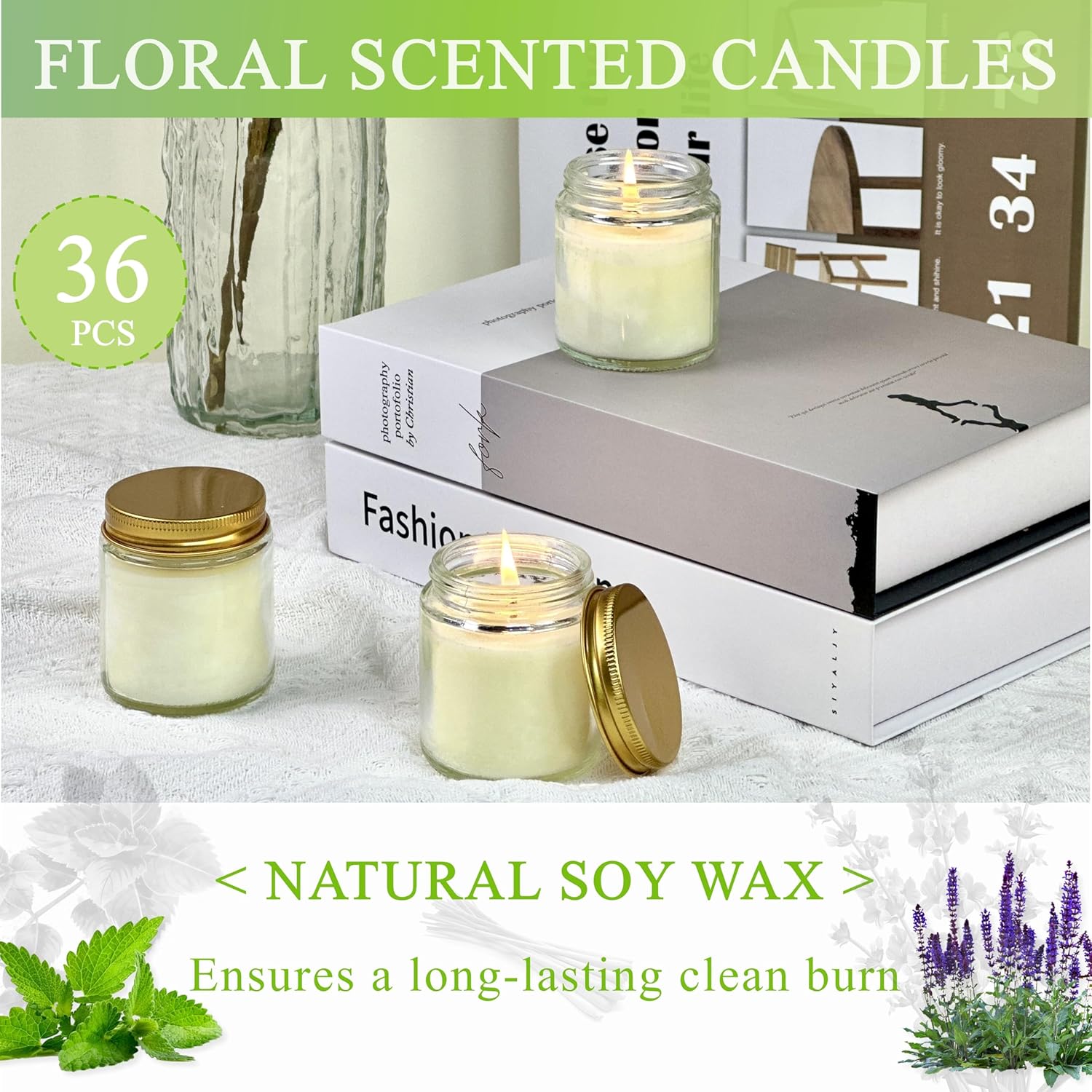- Product Contents: 36 candles (4 oz each) in glass jars with gold lids, including 12 sage, 12 mint, and 12 citronella-scented candles.
