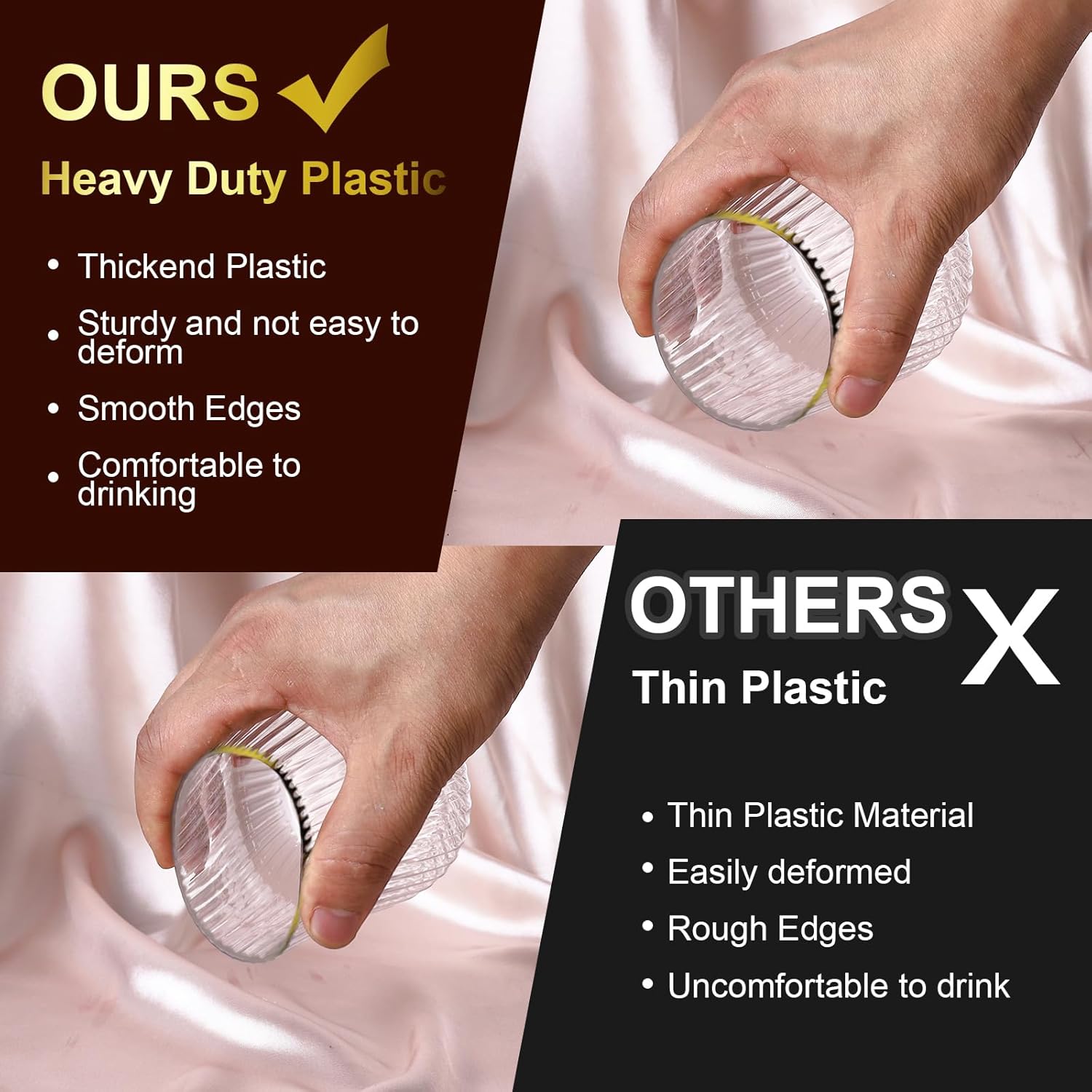 - ăUnbreakable & ReusableăThe unbreakable plastic wine glasses disposable are made of heavy duty plastic, it is unbreakable, shatterproof, disposable and reusable. You don't have to worry about the plastic whiskey glasses for parties breaking anymore. After use, NOT dishwasher-safe!
