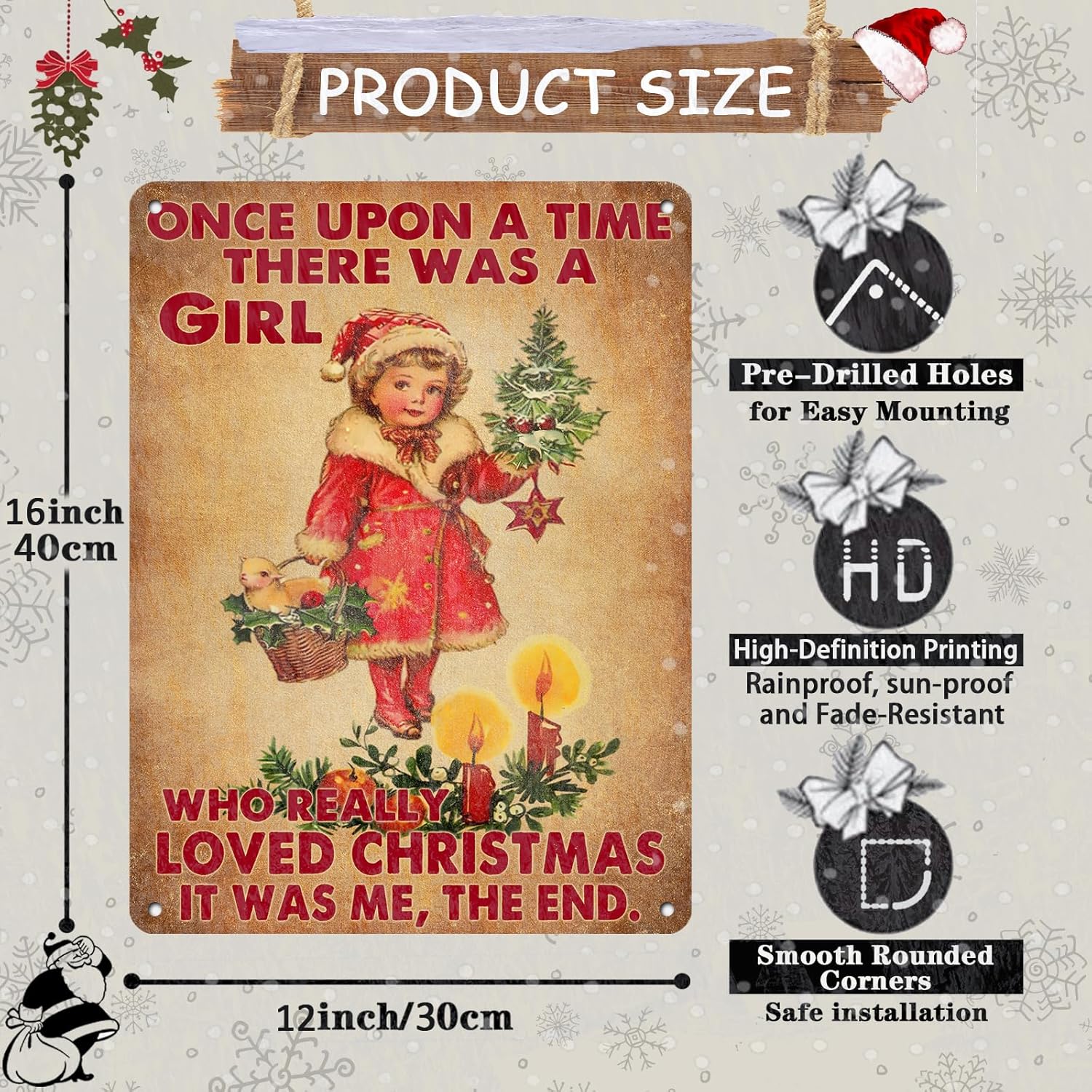 - Girl Christmas Metal Sign Easy To Install : The Vintage Christmas Tin Sign has Rolled Edges and Rounded Corners to Avoid Injury, Plus It Comes With 4 Pre-Drilled Holes, Requiring No Adhesive or Special Equipment. This ​​Once Upon a Time Girl Loved Theme Christmas Metal Sign is Designed to Withstand Outdoor and Indoor Conditions, So You Can Display It Anywhere You Like.