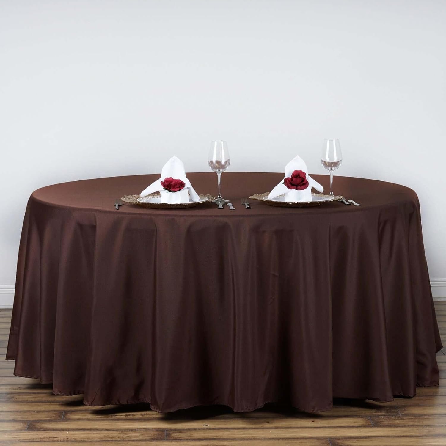 Efavormart Round Tablecloth, 120 Inch Stain & Wrinkle Resistant Washable Table Cloth, Decorative Polyester Fabric Table Cover for Banquet, Wedding, Dining - Chocolate