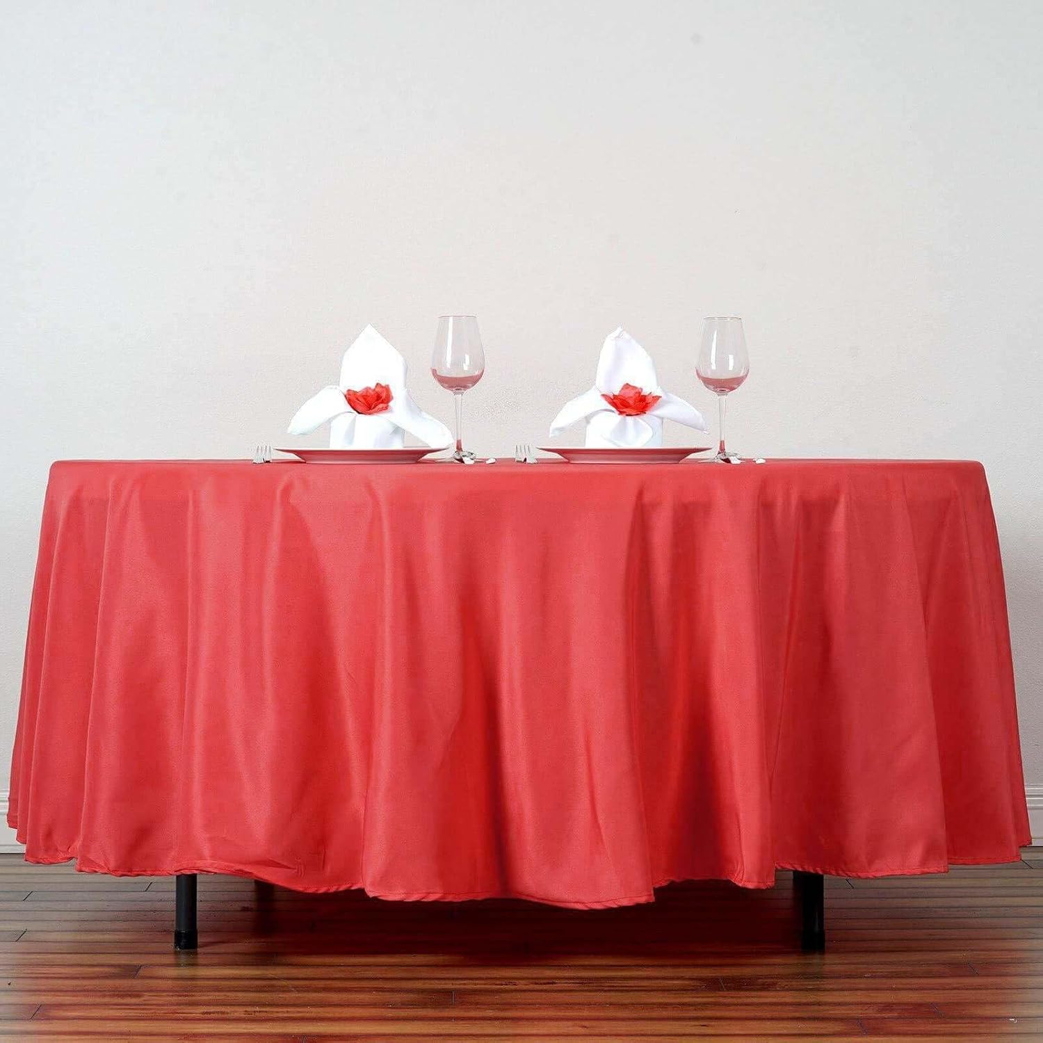 Efavormart Round Tablecloth, 108 Inch Stain & Wrinkle Resistant Washable Table Cloth, Decorative Polyester Fabric Table Cover for Banquet, Wedding, Dining- Red