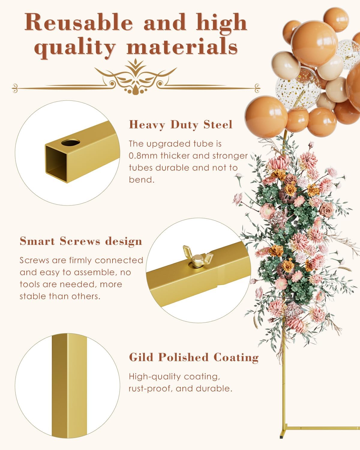 - Easy to Assemble: Our metal wedding arch stands, including a wedding arch frame suitable for balloon arch backdrops, are made of sturdy and lightweight square steel pipes with a bright gold color. With a higher bearing capacity and easy assembly, the arch frames can be quickly put together with screws in minutes. The metal arch backdrop stands are designed for easy disassembly by a single person, making setup convenient and hassle-free for any event.