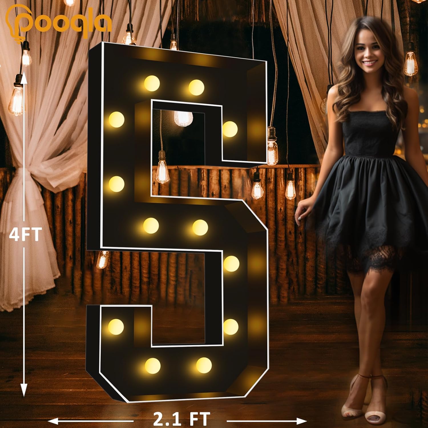 Pooqla 4 FT Light Up Marquee Numbers, Black Marquee Number Lights 4 Feet Tall for 5th 15th 50th Birthday, Giant Letter Big Mosaic Numbers for Balloons Party Anniversary Wedding Decorations, Number 5