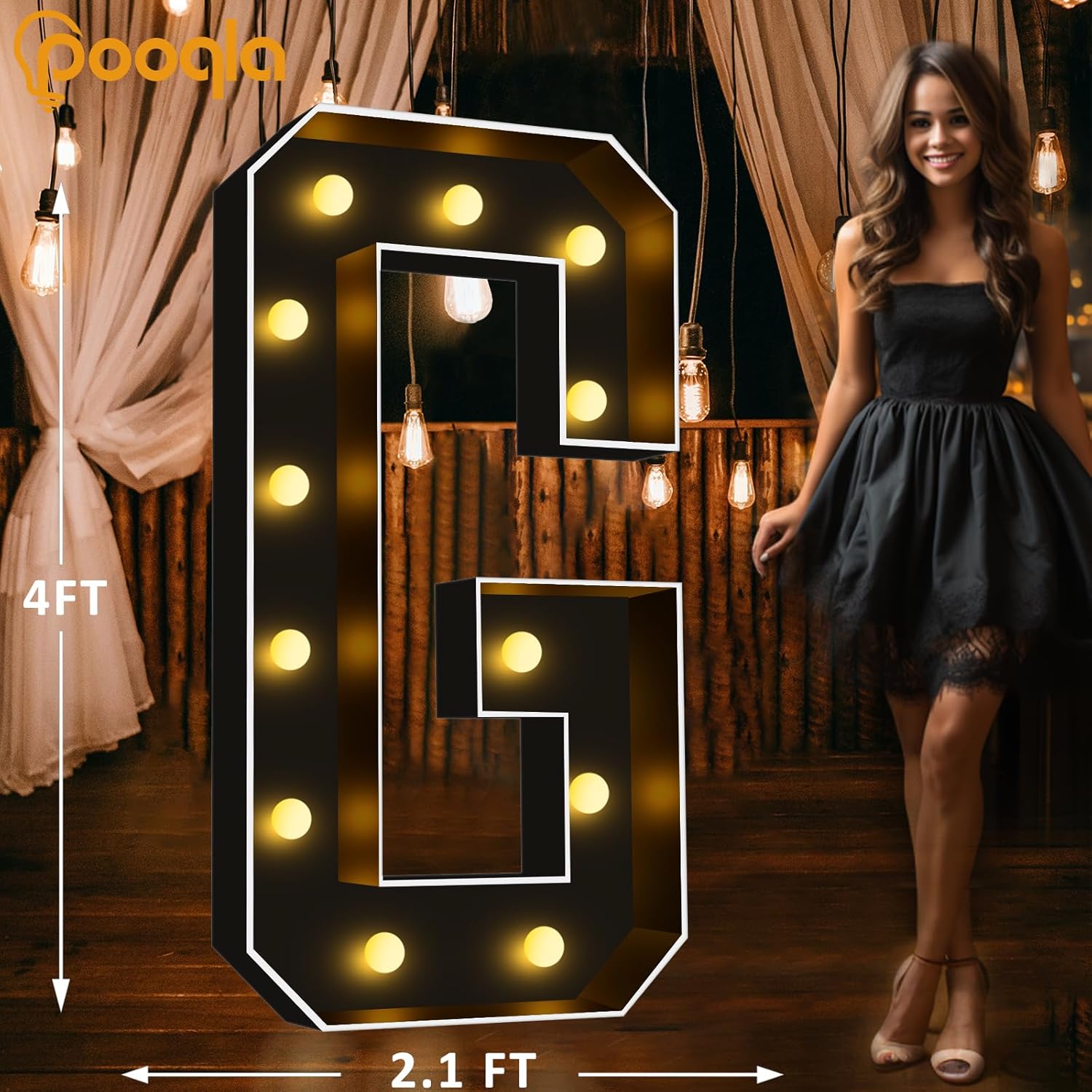 Pooqla 4 FT Marquee Light Up Letters, Black Letter Lights 4 Feet Tall, Giant Sign Big Mosaic for Balloons Birthday Party Anniversary Wedding Decorations, Warm White G