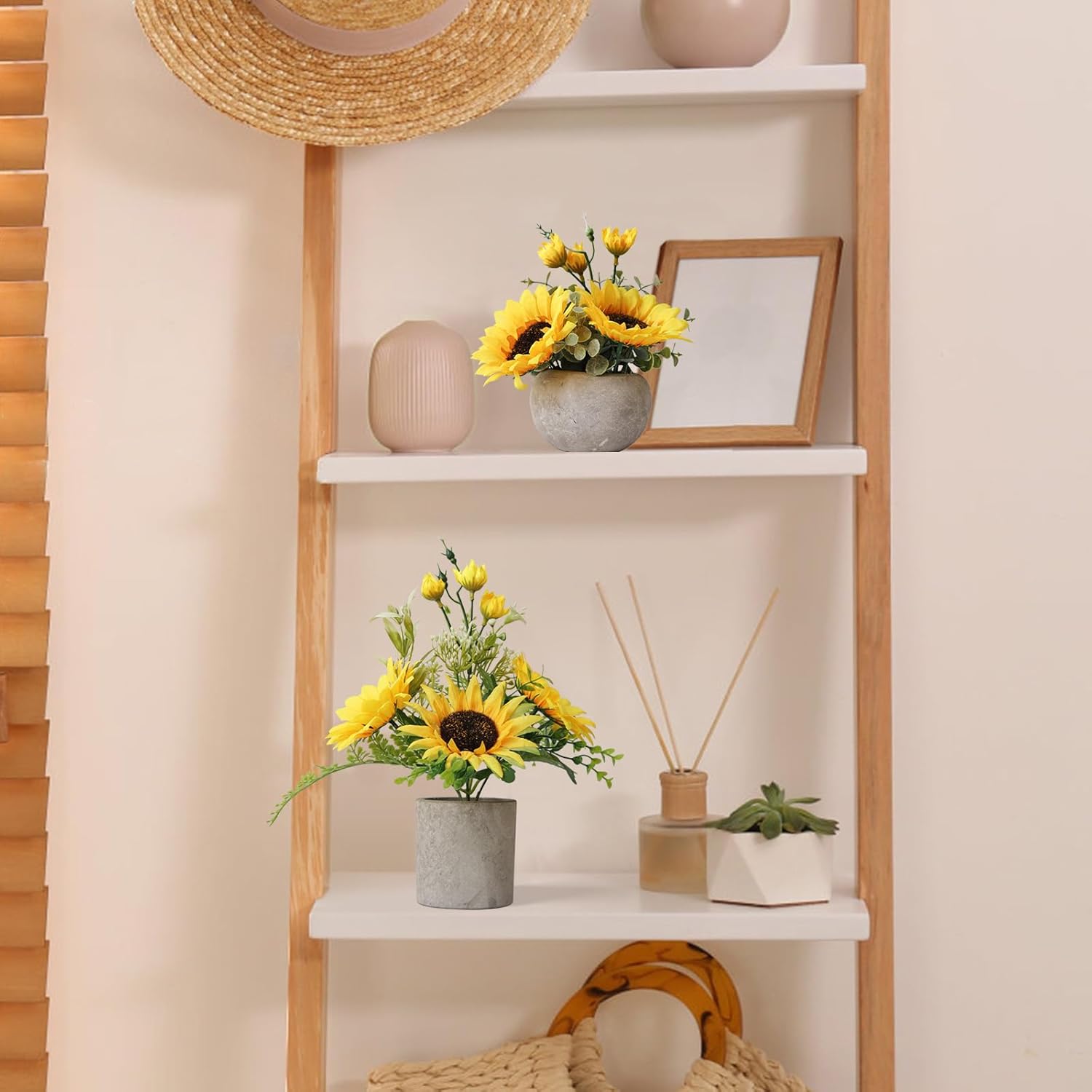 - Home Decor Aesthetic:Fake sunflowers are perfect choice for room decor,Bathroom decor,Living room decor,Office decor,Kitchen decor,Bohemian decor;It can bring artistic aesthetics to any space