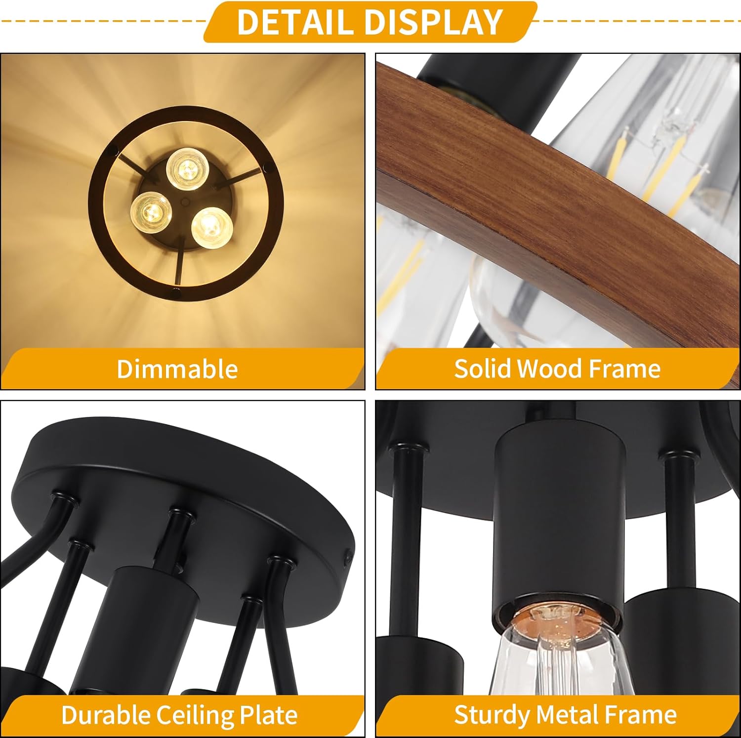 - 💡 WOODEN SEMI FLUSH MOUNT CEILING LIGHT — Featuring a solid wood circle frame and metal canopy, this farmhouse light fixture blends modern and rustic styles. Ideal for use as foyer lighting fixtures, an entryway light fixture, and kitchen lighting fixtures ceiling in various home spaces