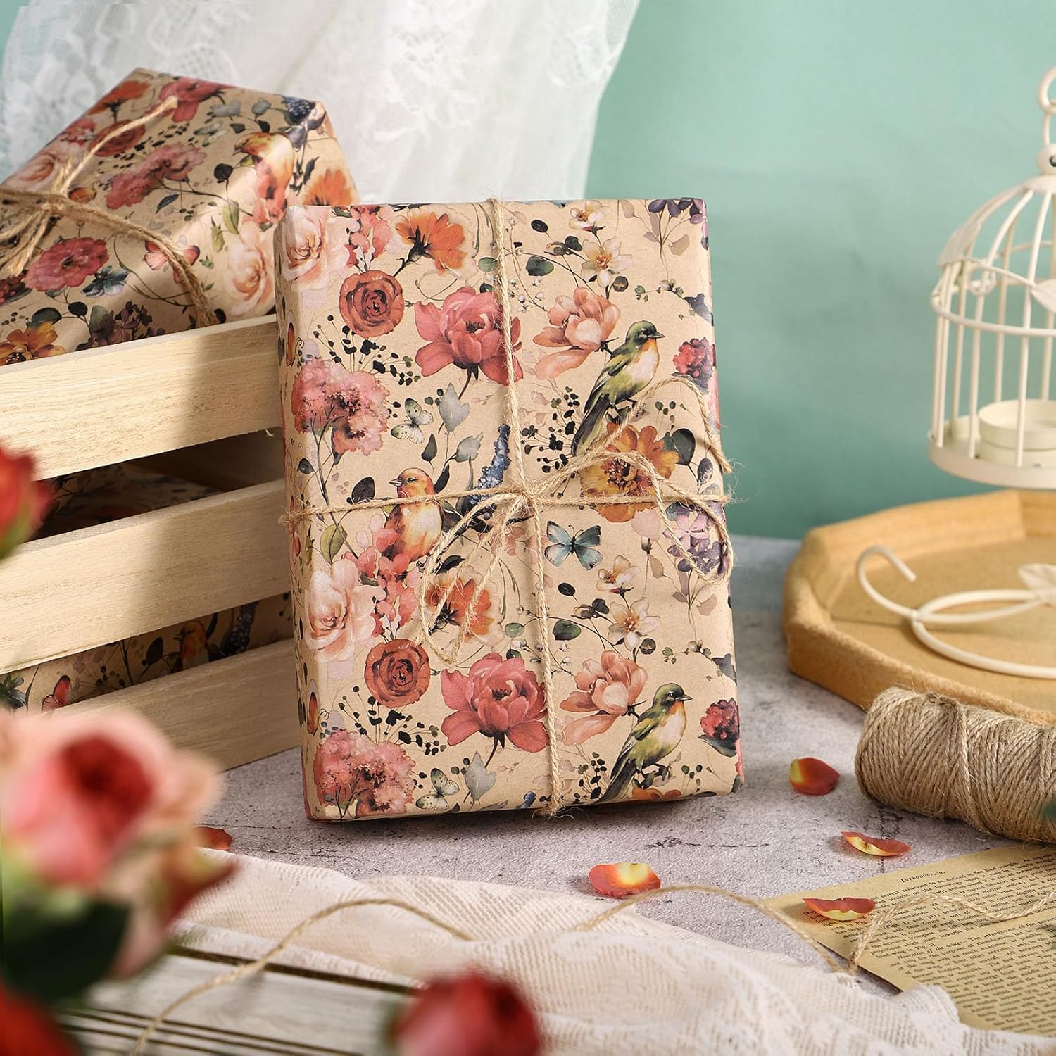 - Vintage Flower Wrapping Paper Roll: Adorn your gifts with a blooming flower and bird print that exudes charm and elegance. The flower wrapping paper with butterfly make it ideal for creating a wonderful gift presentation that leaves a lasting impression