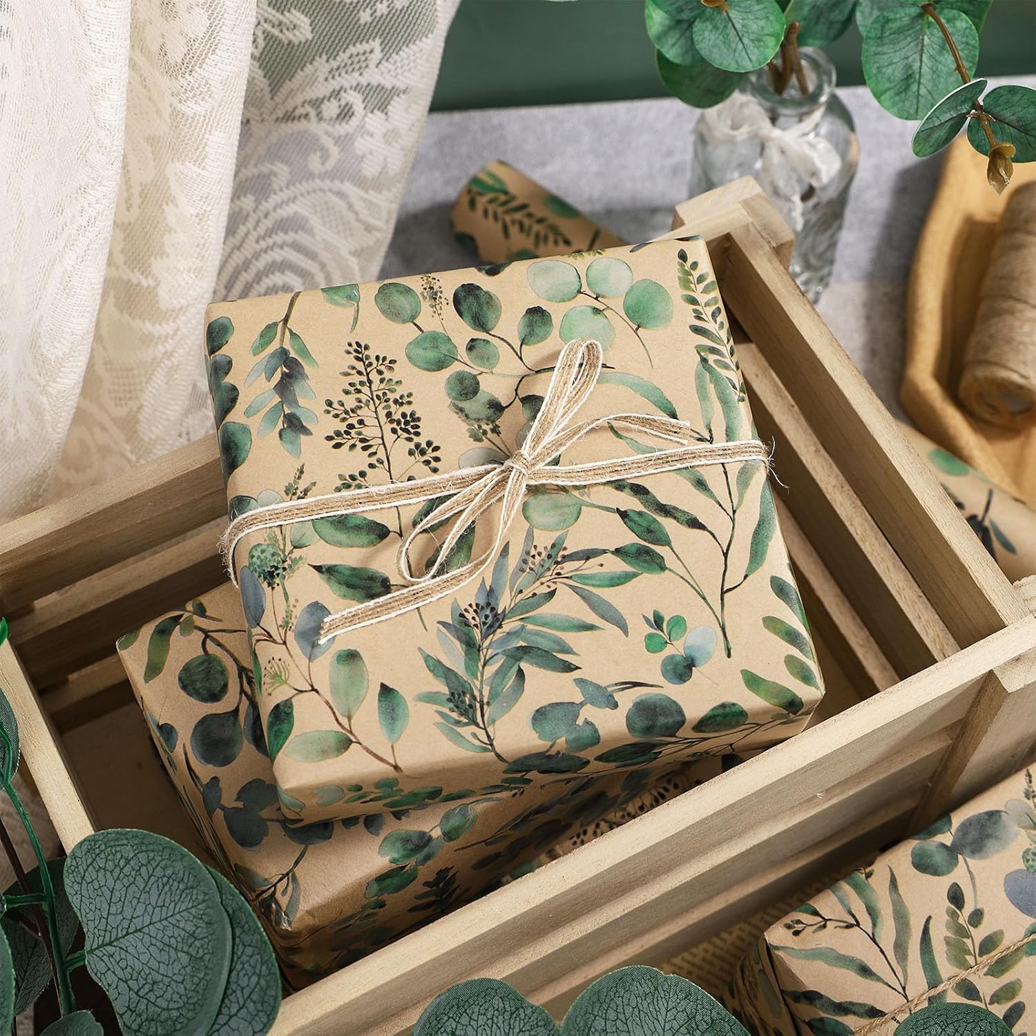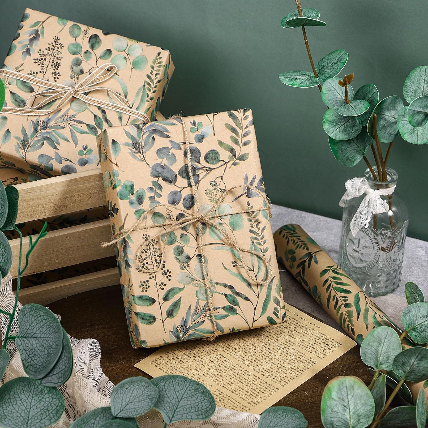 - Eucalyptus Pattern Wrapping Paper Roll: Adorn your gifts with a eucalyptus leaf print that exudes charm and elegance. This gift wrapping paper make it ideal for creating a wonderful gift presentation that leaves a lasting impression