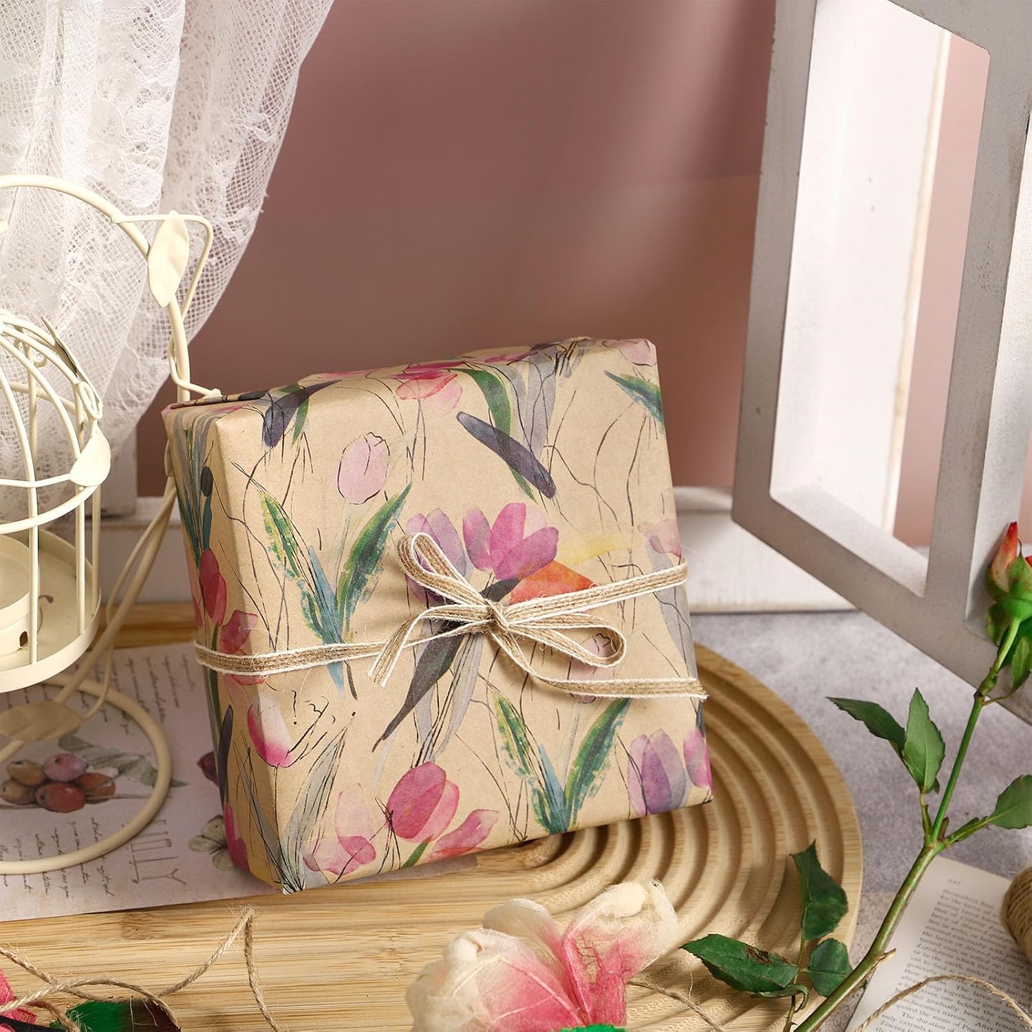 - KRAFT WRAPPING PAPER ROLL: Featuring elegant floral patterns on one side and a rustic brown kraft design on the other, ideal for spring-themed gifts, women's occasions, and everyday wrapping needs