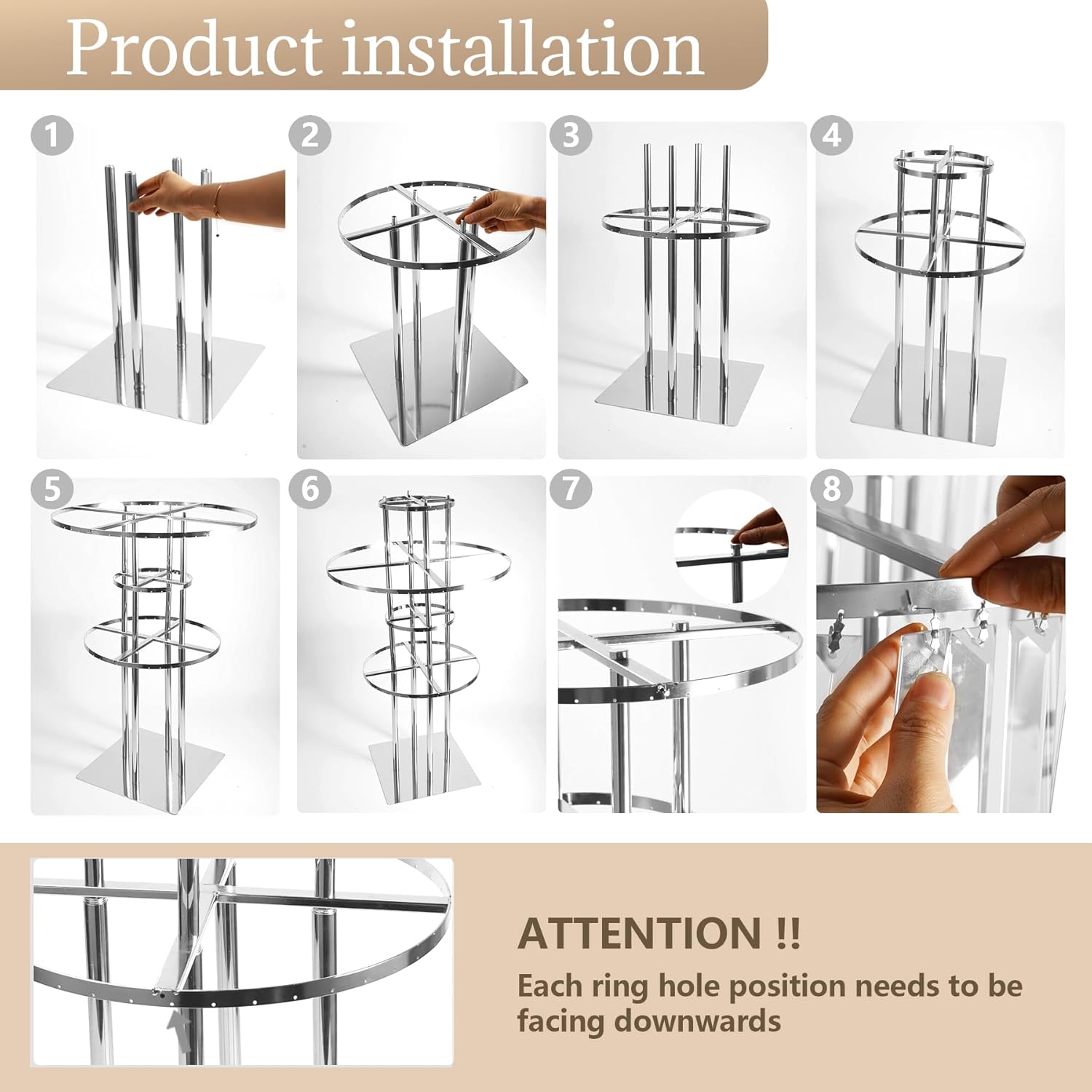 - Elegant Design: The exquisite finish and unique hollow design, with 5 tiers sparkling crystal pendant, make this metal pedestal stands for central decoration unique and elegant, adding color to your weddings and events. You can arrange on your own ideas, DIY on you want, it will create a rich visual effect.