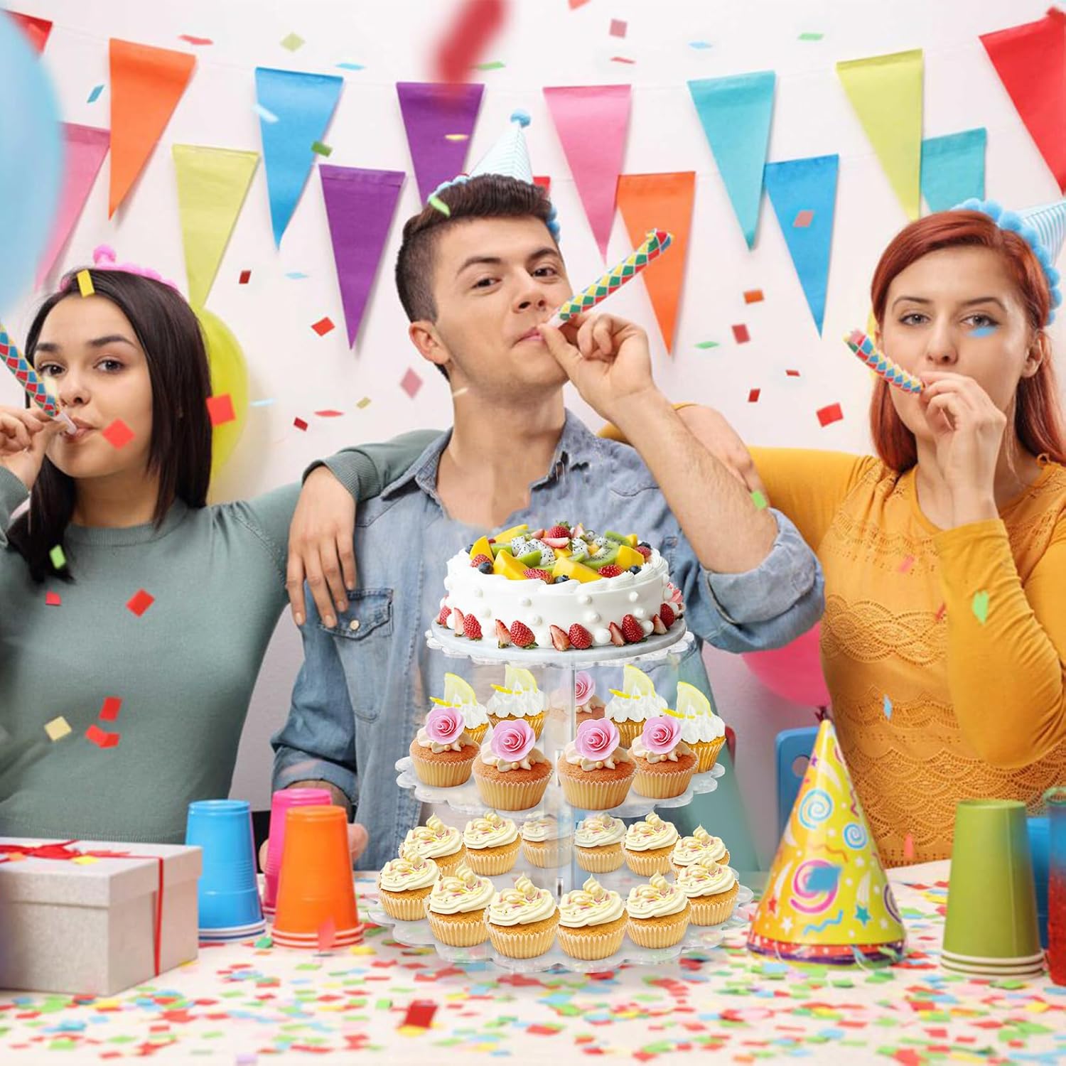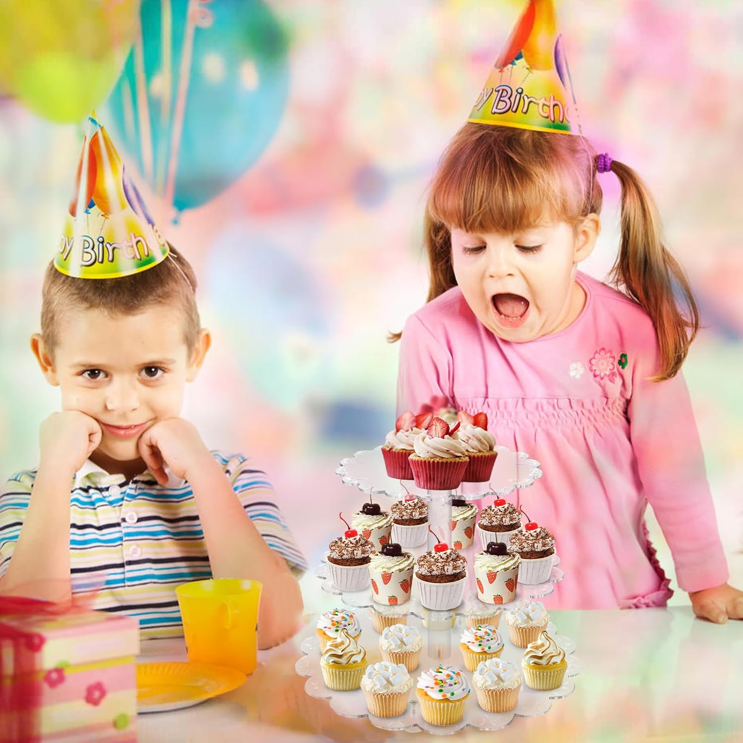 - 【3 Tier Cupcake Stand with Base】The round cupcake tower stand can be used with just 2 or 3 tiers, can holds about 22-25 cupcakes (2.5inch diameter of cupcake size). Transparent cake display stand can also show your macarons, desserts, cookies, chocolates, donuts, candy, fruits to your friends or families