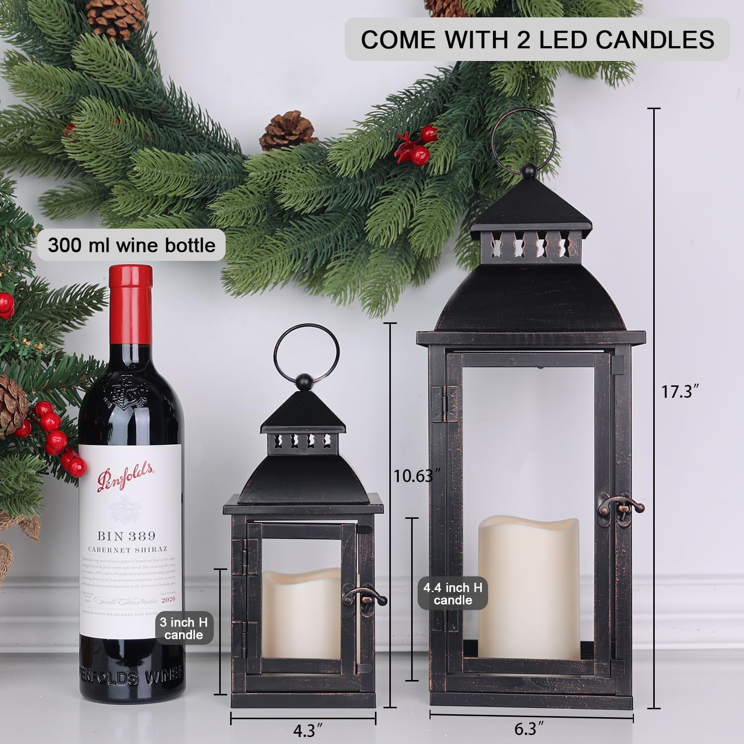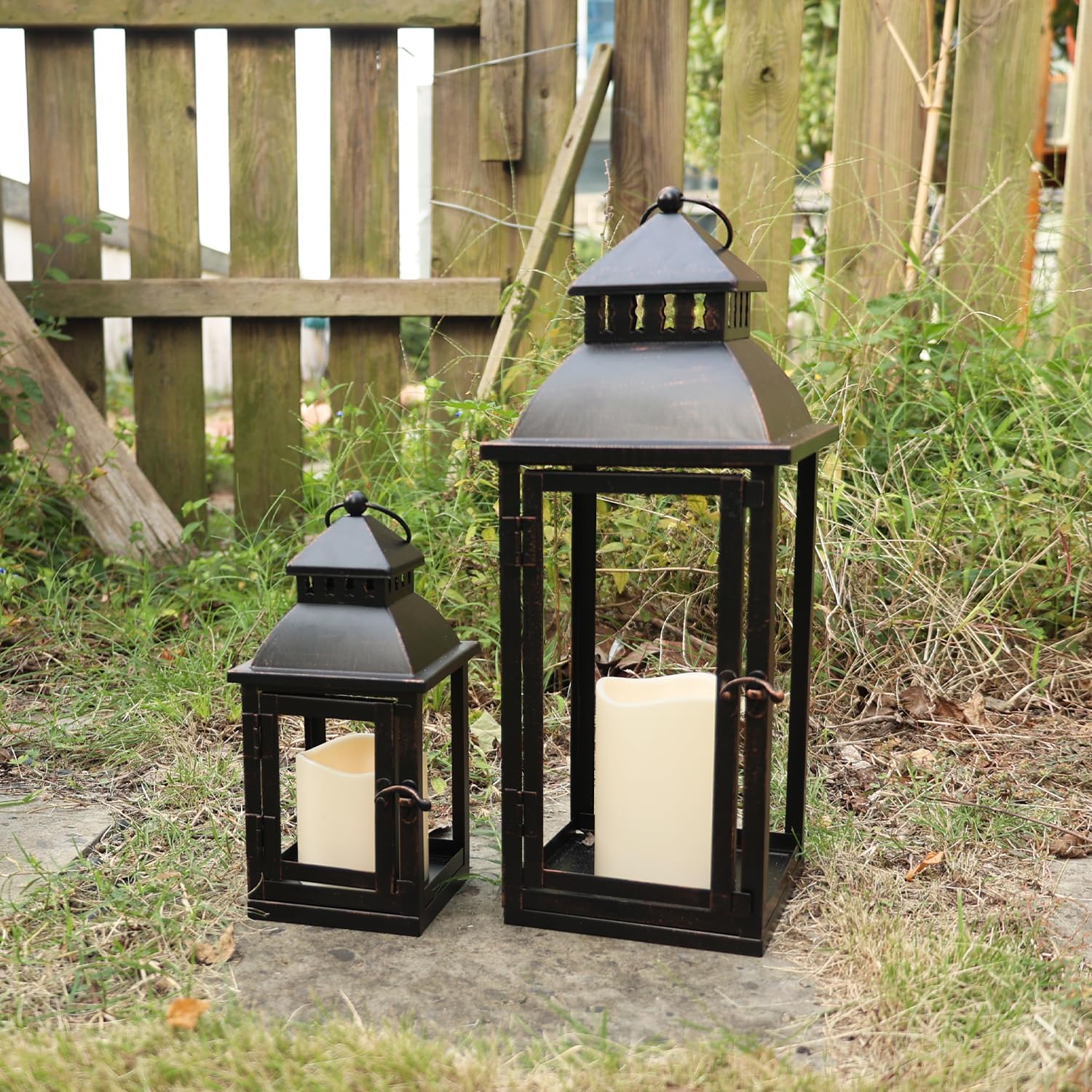- Suitable for Most Outdoor Scenes——The set of 2 Large Bronze vintage LED candle lantern is perfect for outdoor use. The metal material with LED candles can withstand wind and rain which allows you to see the bright, flickering candles, creating a fantastic atmosphere. (NO GLASS)