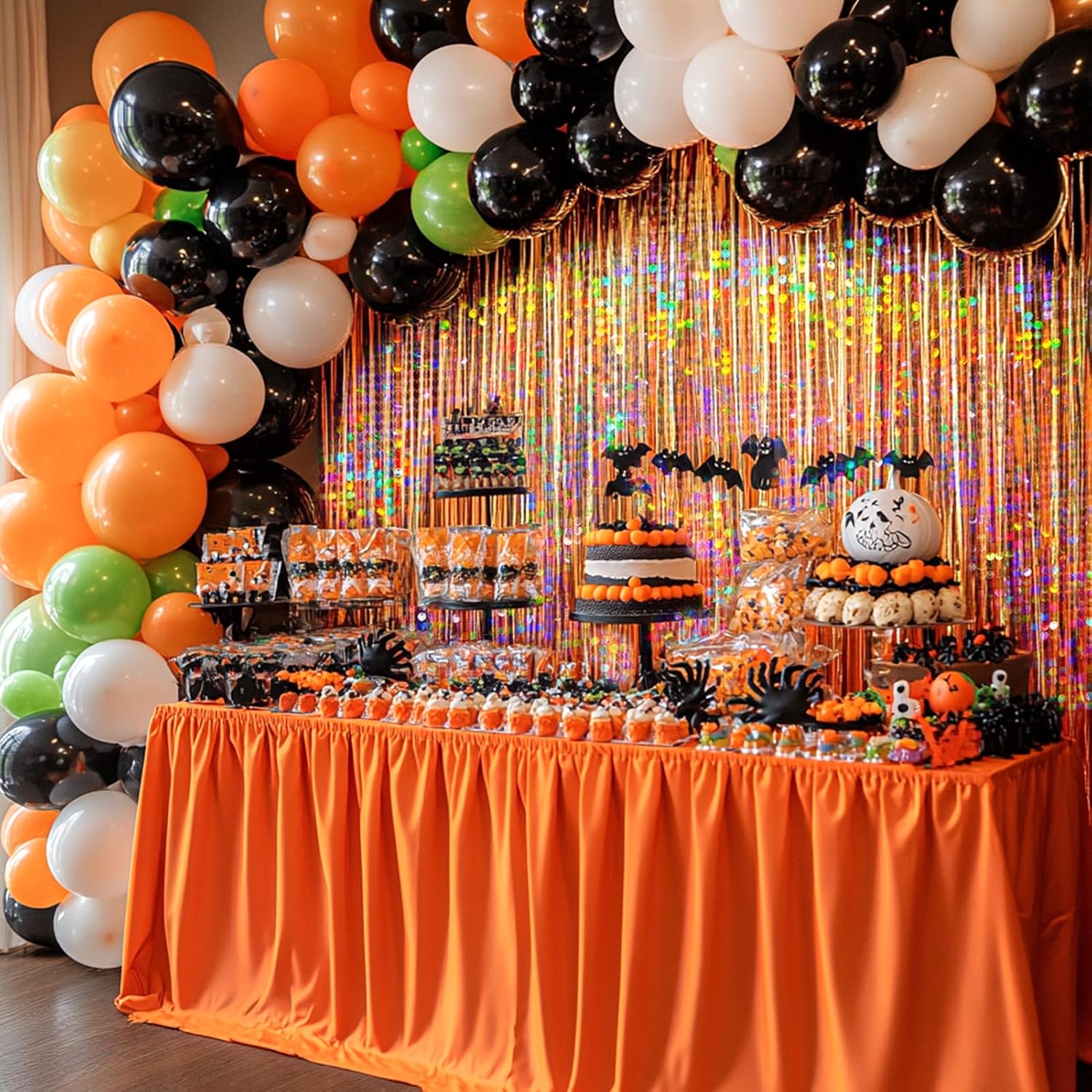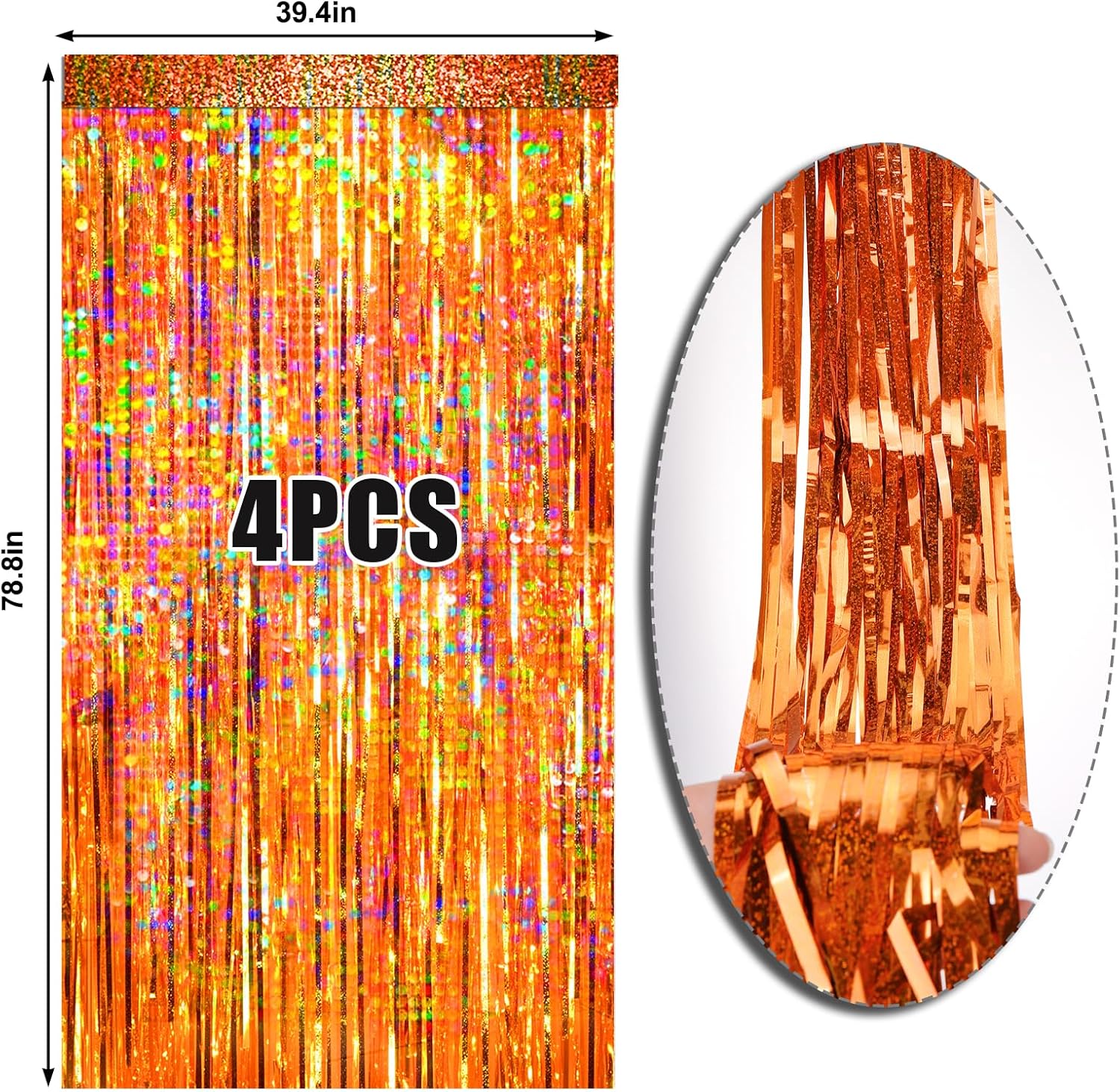 - Orange Fringe Backdrop: You will get 4 Pcs orange tinsel backdrop. Size: 6.6ft*3.3ft. The foil fringe curtains are perfect for the door or wall to create an impressive decoration for parties, events, and photo booths.