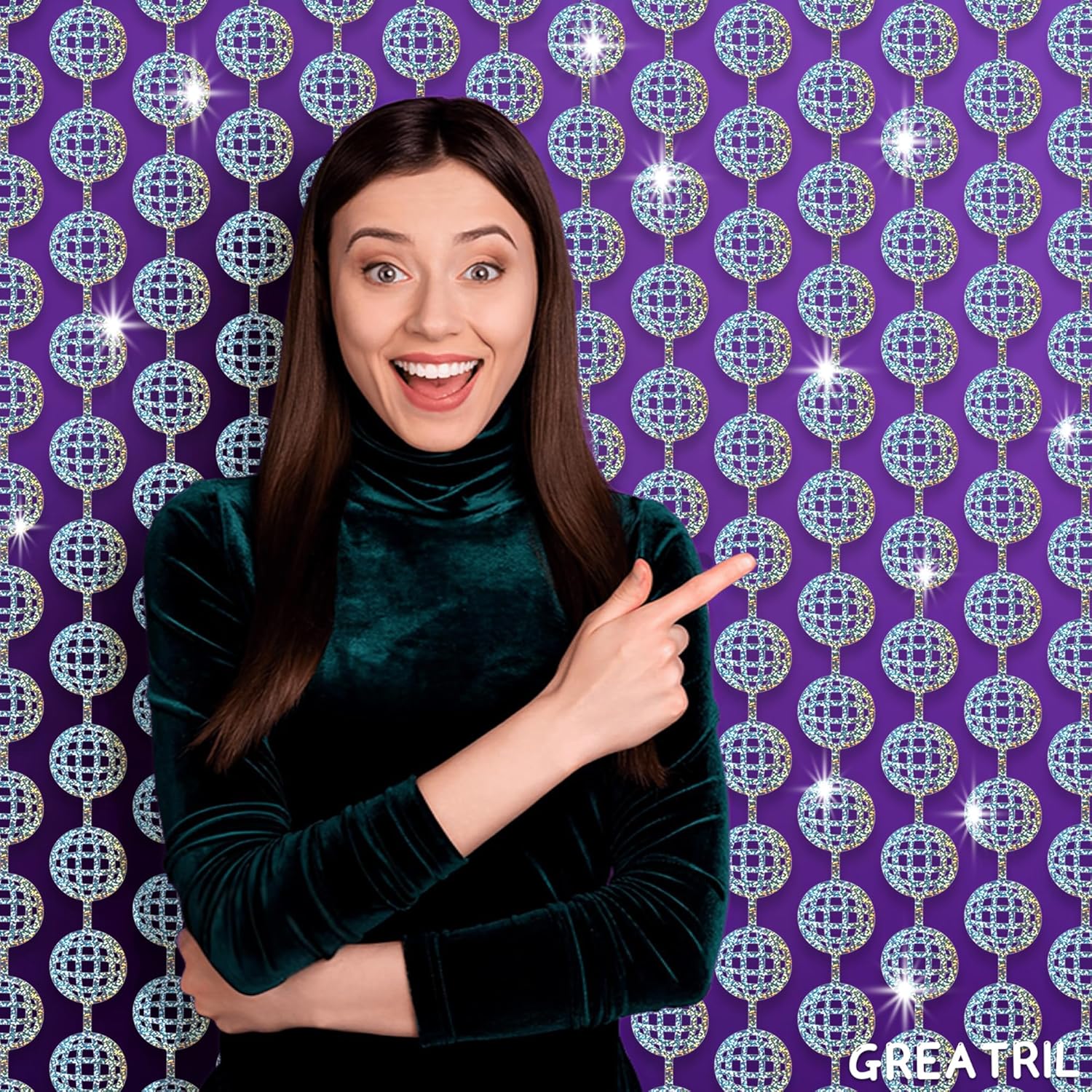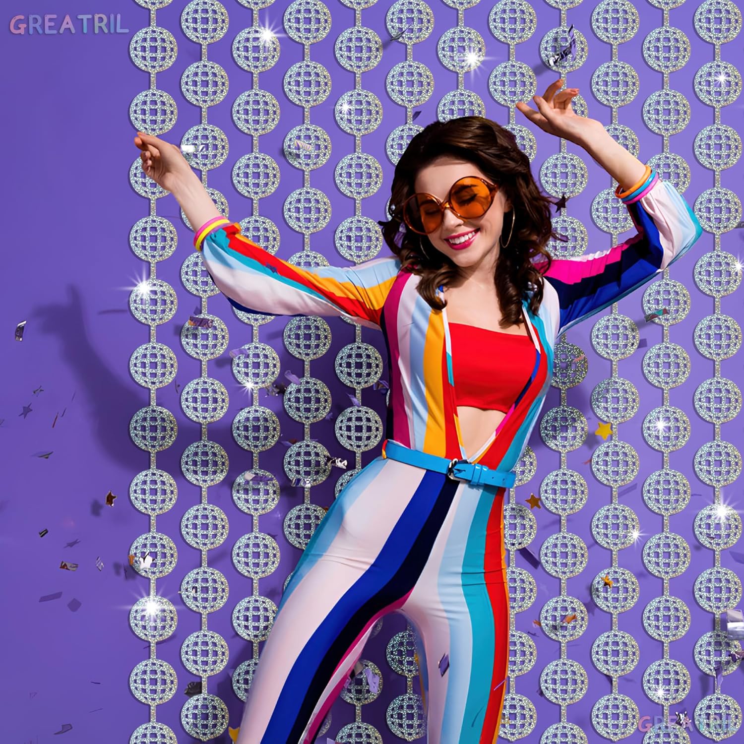 Discos Dancing Ball Shaped Party Backdrop - GREATRIL Prom Fringe Curtain Backdrop with Sparking Surface for Birthdays Discos Graduation New Years Party Decoration - 3.2ft x 6.5ft - 2 Packs