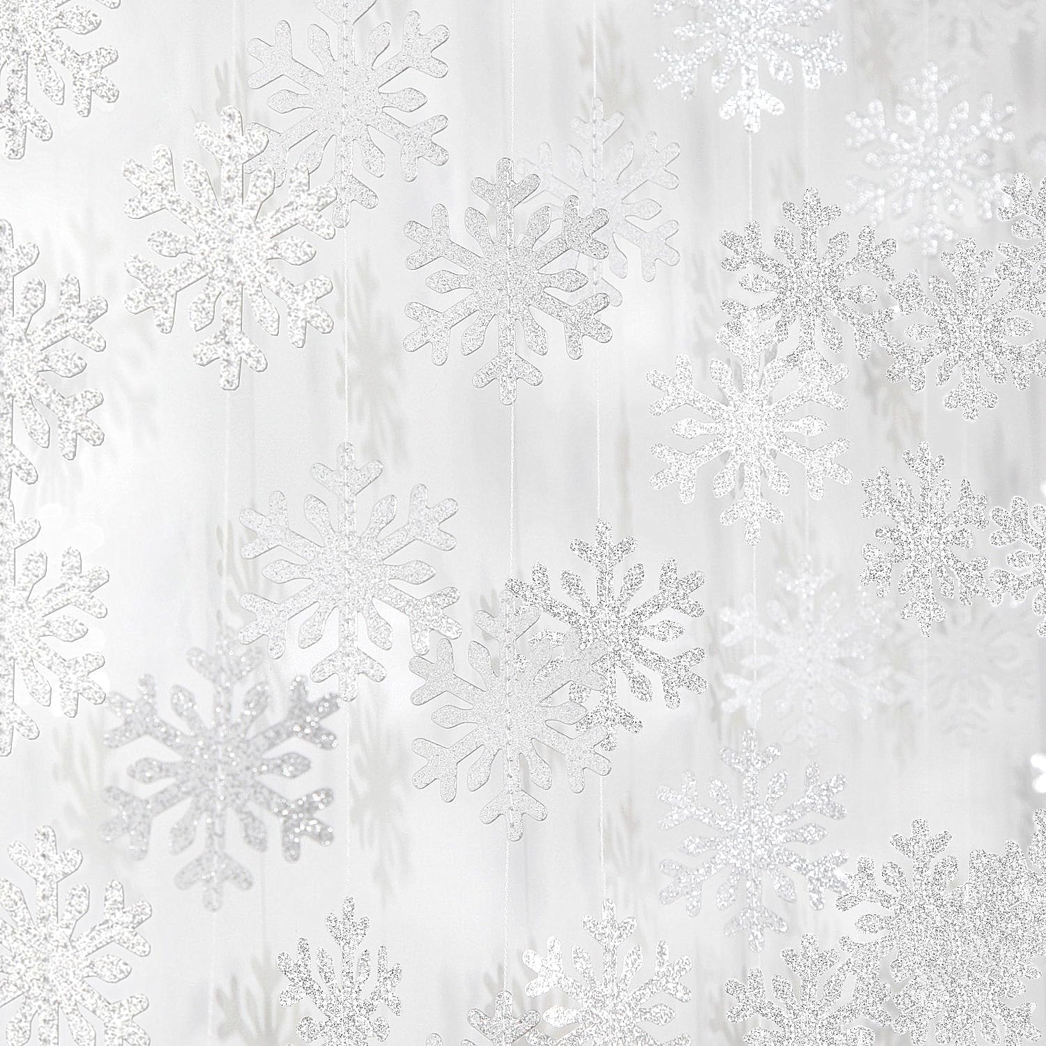 - 【Wide Use】These streamers garland are great for indoor and outdoor events such as christmas ornaments,frozen birthday party ,winter wonderland decorations,silver christmas decor,snowflake decorations,vintage snow party decorations, baby shower ,wedding,classroom,office ceiling decorations.