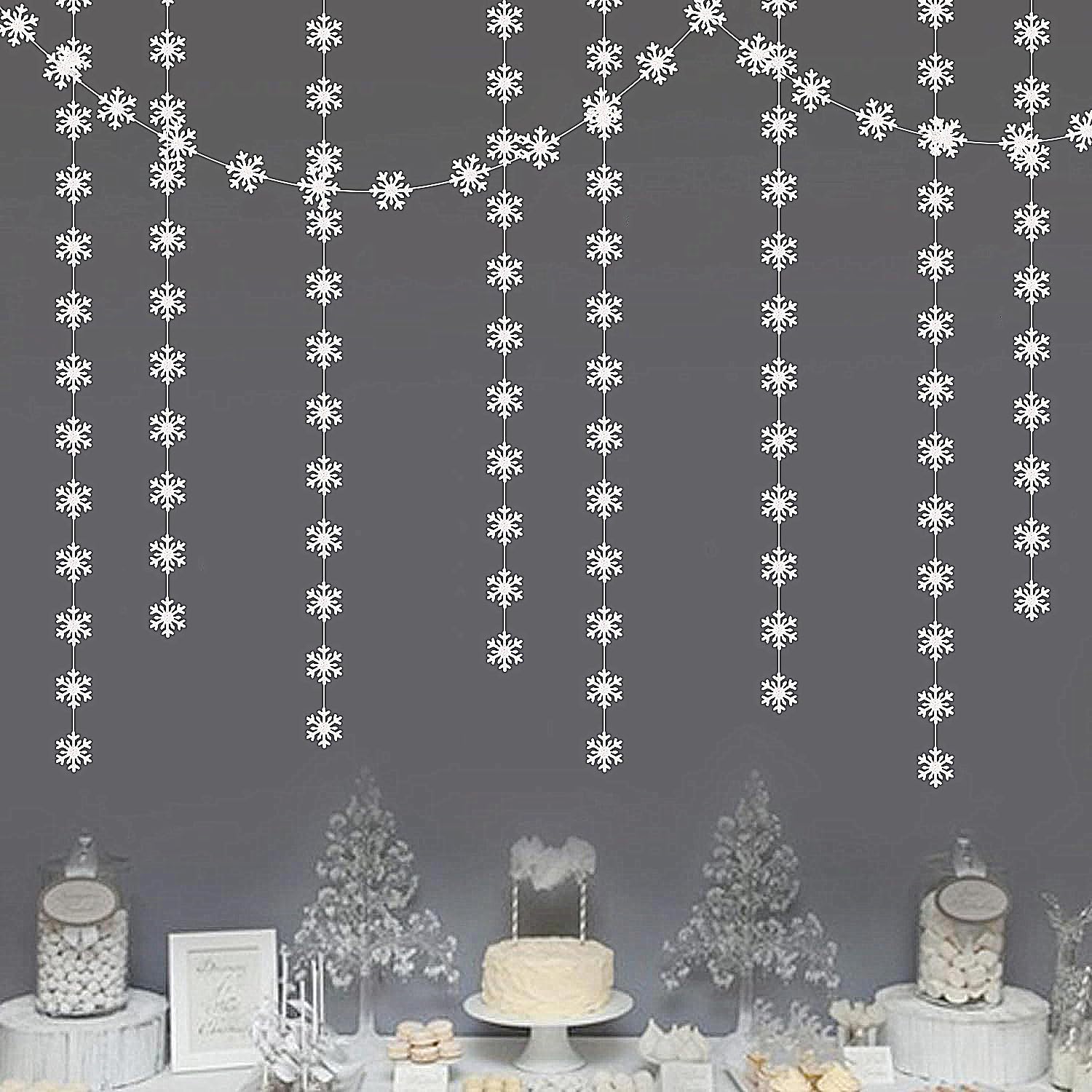 - 【Wide Use】These streamers garland are great for indoor and outdoor events such as christmas ornaments,frozen birthday party ,winter wonderland decorations,white christmas decor,snowflake decorations,vintage snow white party decorations, baby shower ,wedding,classroom,office ceiling decorations.