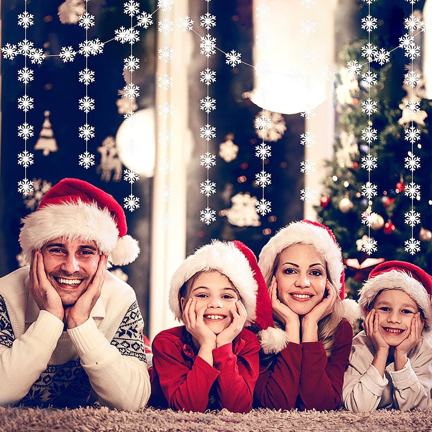 - 【Snowflake White Christmas Decorations Kit Includes】The party garlands includes 4pcs paper garlands, each backdrop bunting is 13 feet/ 4 meters long, total length is 52 feet/16 meters.