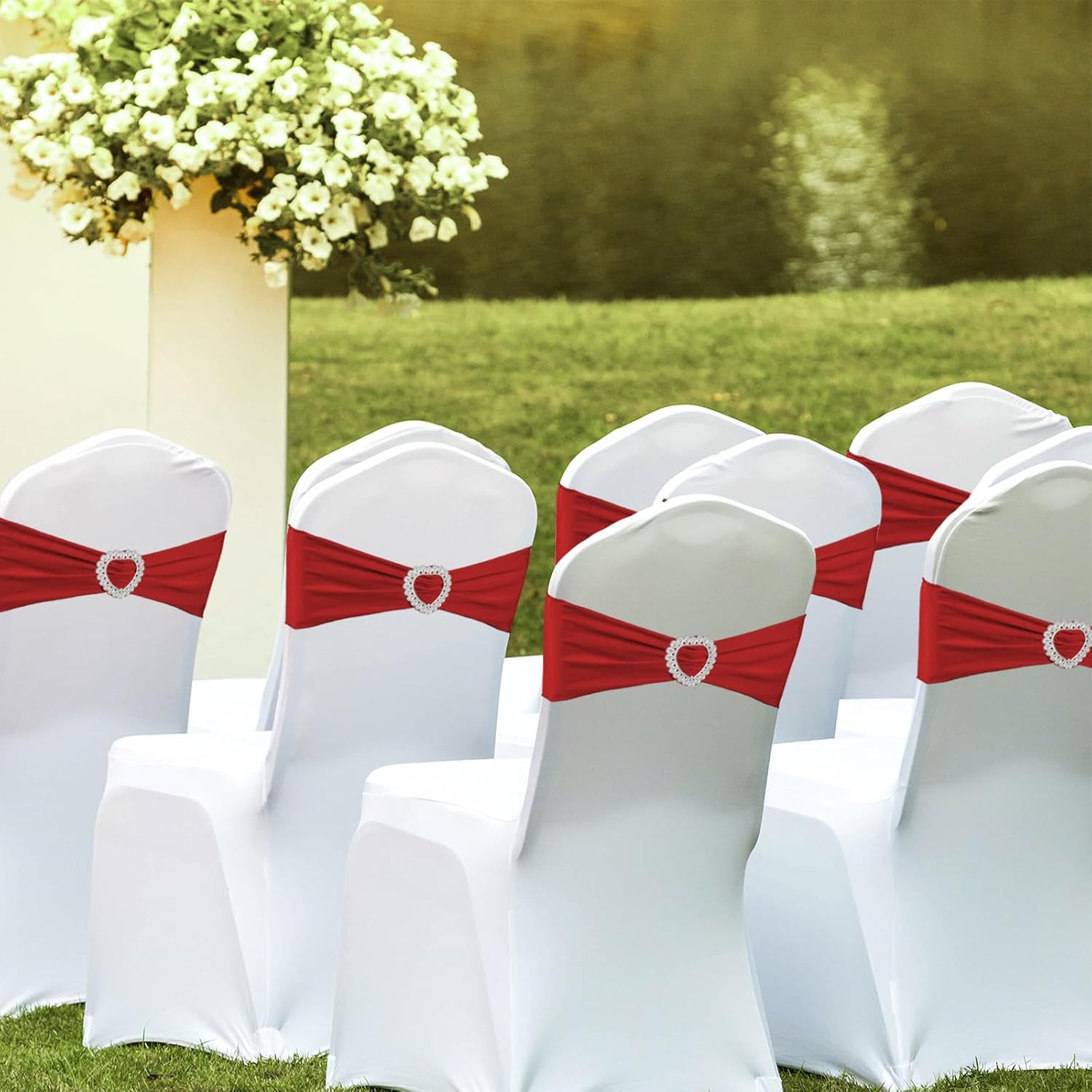 - Wide Use:These chair bows with plastic buckle slider, sturdy to use, strong and reusable; highly stretchable and fits 13-19 inches of chair back width, which can help the chair sash fit the chair better. Can fit them on most of Banquet Chairs, Stacking Chairs, Dining Room Chairs and folding chair.