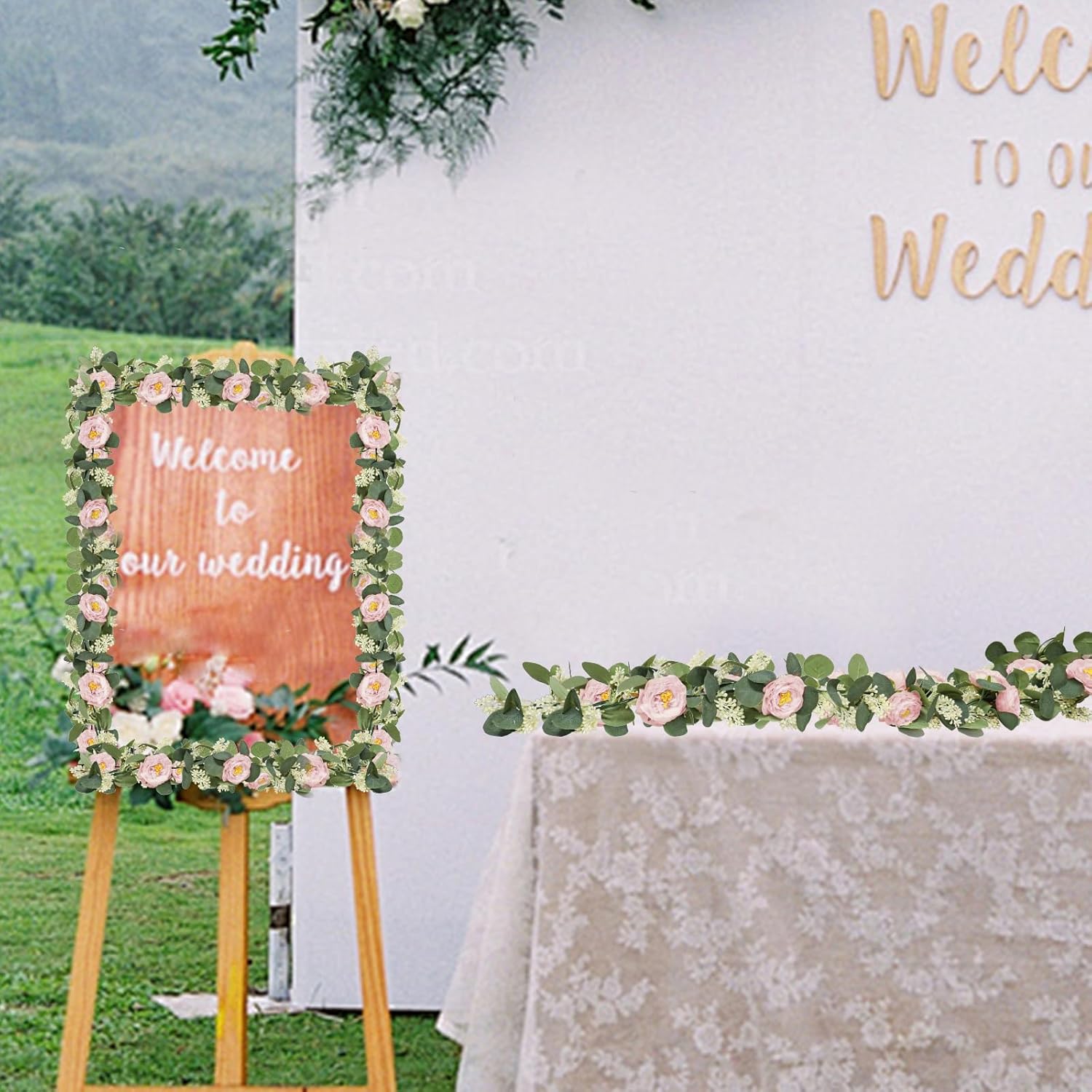 - 🍀🍀【Rose Garland Decor】: The handmade artificial Eucalyptus garland decorations are deal for any wedding or home decoration, such as bedrooms, living rooms, dining table, arches, chairs, backgrounds, corridors, backgrounds, hung on both sides of doors or wedding arches etc. DIY event center. Whether you want to create a romantic atmosphere or add beauty to your life, this fake rose flower vine can blend perfectly.