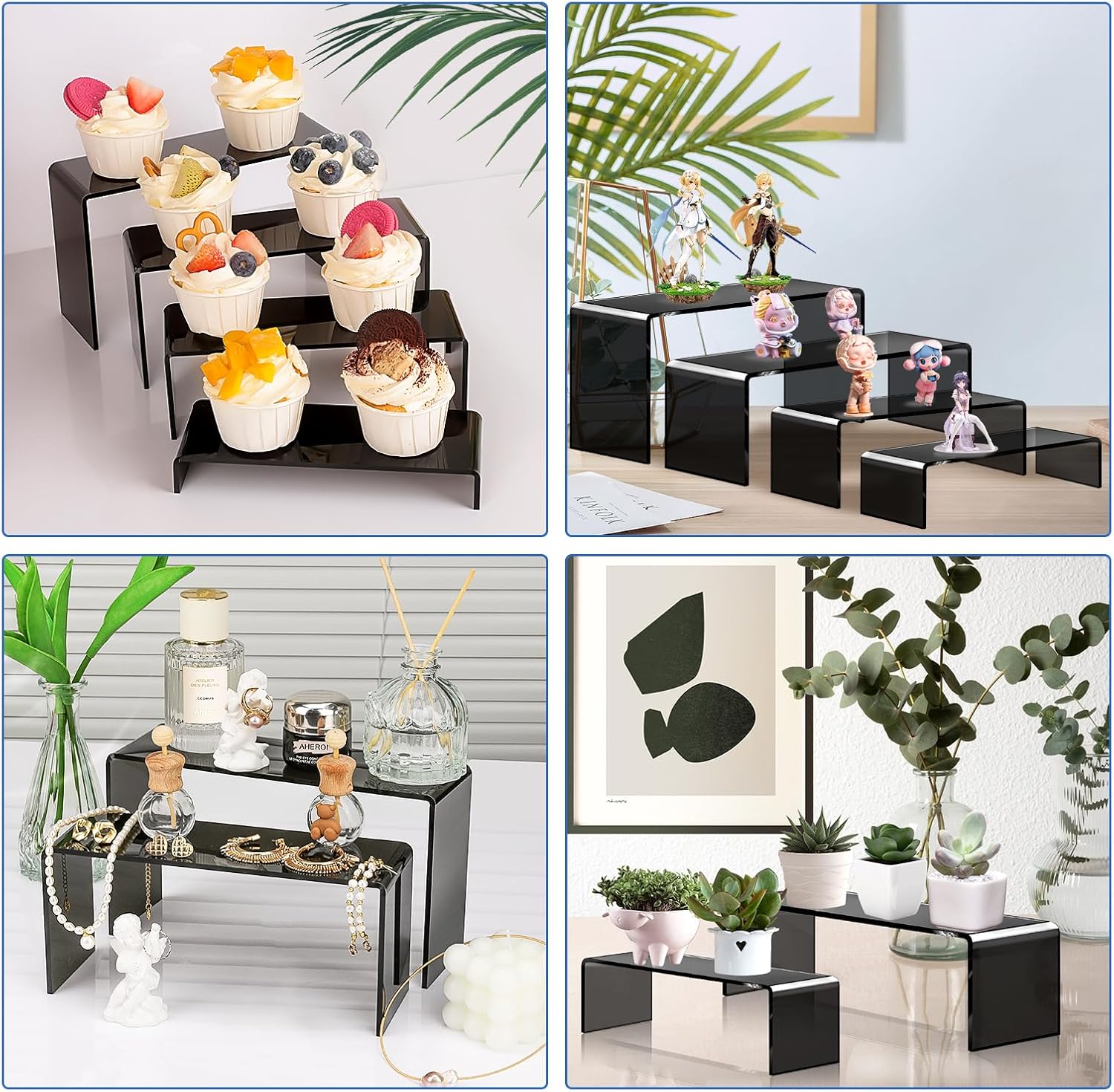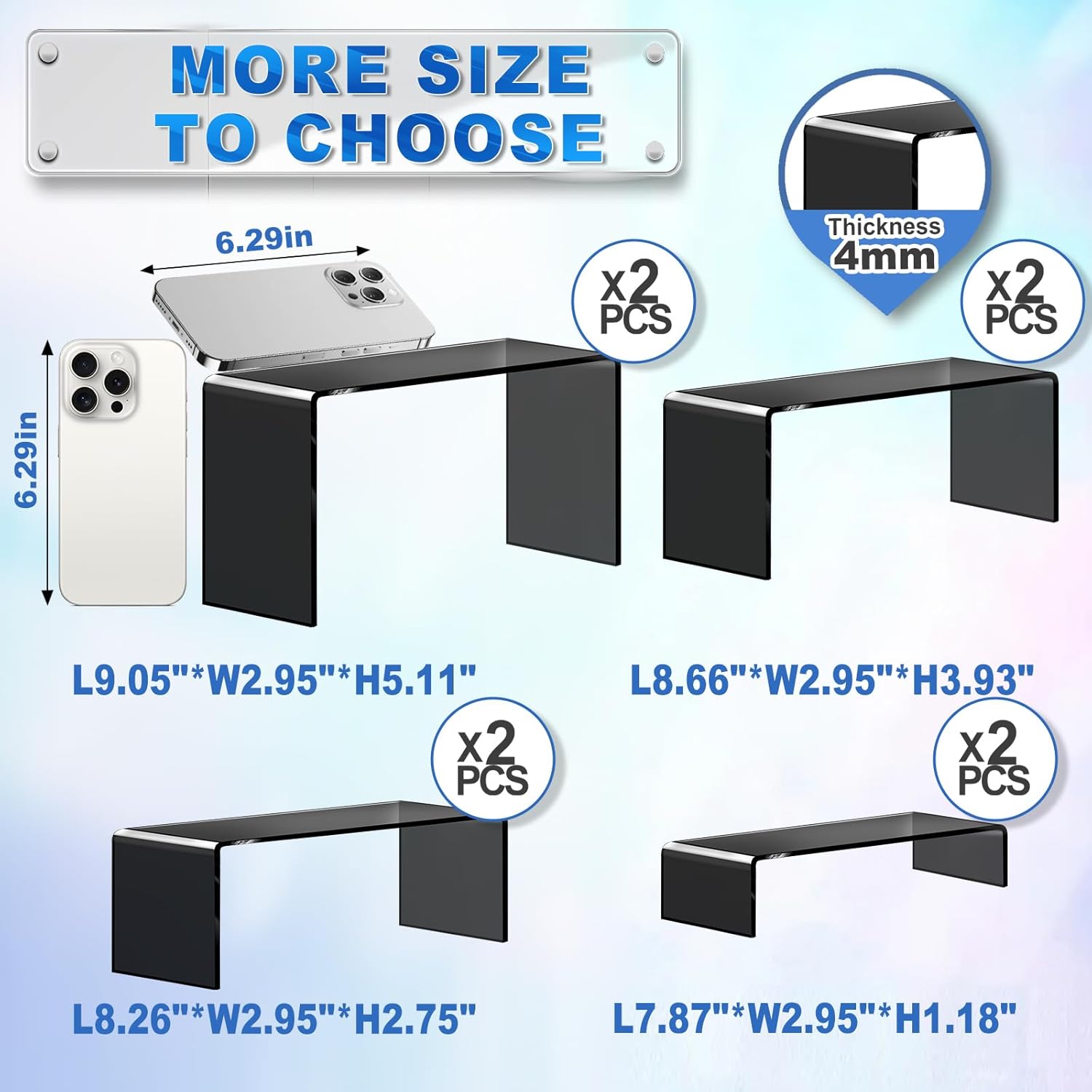 Aheroi Acrylic Risers, 8 Pcs 2 Set(7”L~8”L~9”L) Display Risers, Black Arylic Display Stands Acrylic Shelf Riser, Display Holders for Vendor Events, Cupcake Stands, Toys Display Clear Shelves