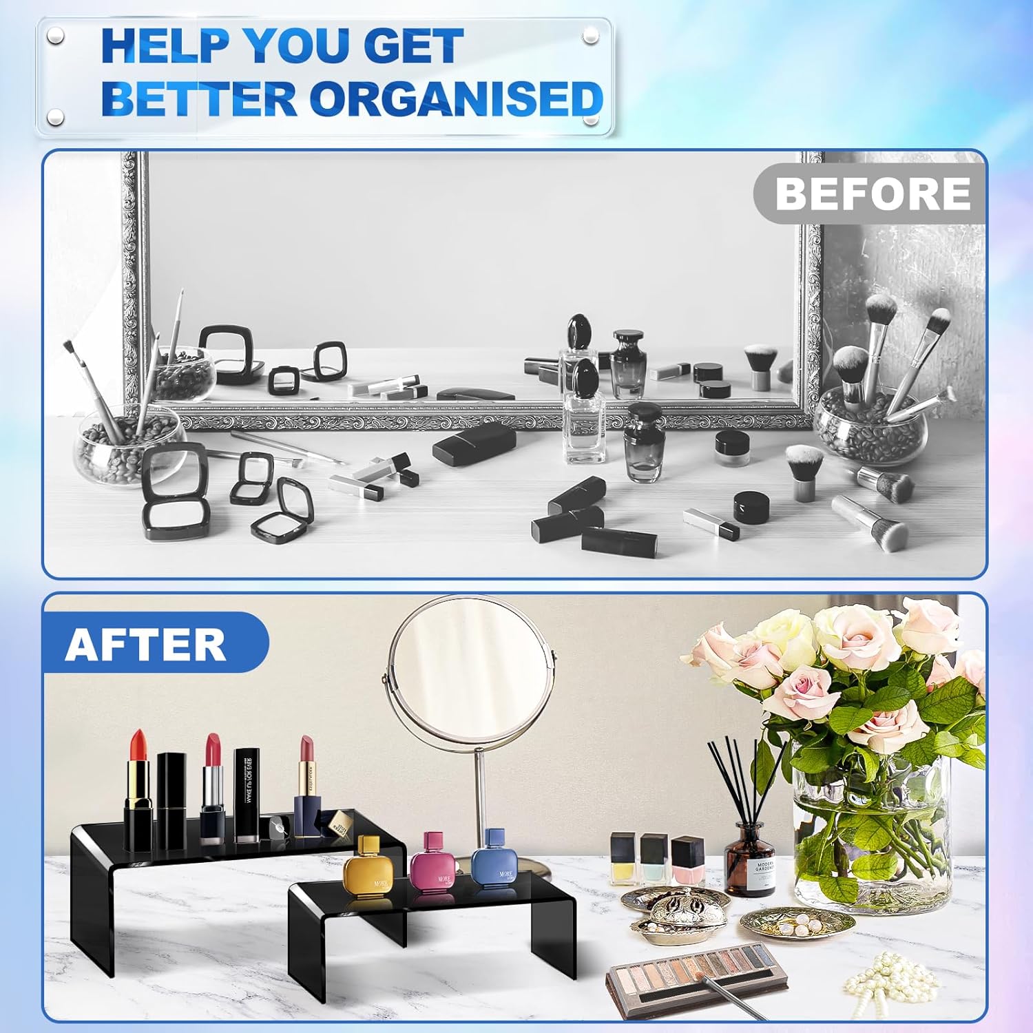 - Reusable & Cleanable:These display risers are also very easy to use, no assembly required no splicing, just put them in the right place for the items you need to display or organize! These acrylic risers display stands are washable and reusable. Simply wipe perfume stand with a damp cloth with warm water and the dust on the Showcase Stands will disappear, very convenient. It won't hurt to use it again afterwards