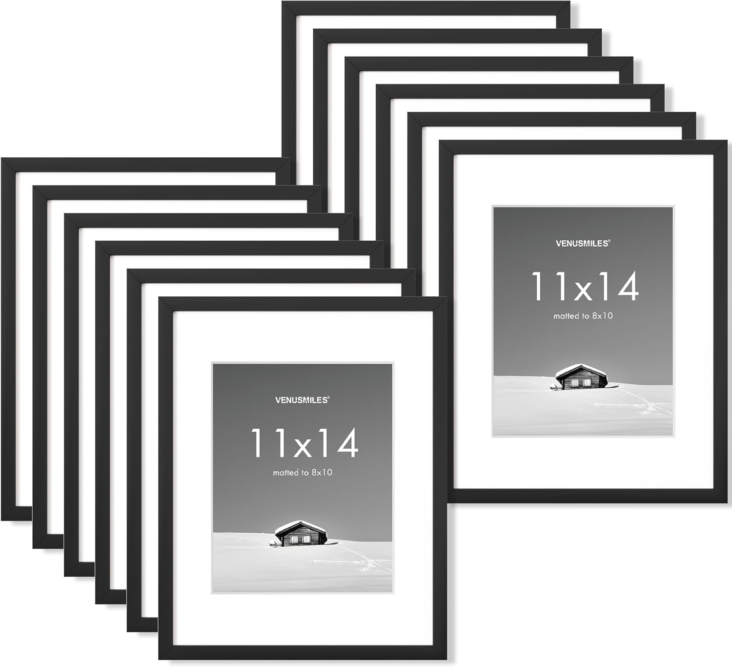 - Display Precious Memories - Showcase your cherished moments with our 11x14 plastic frame. It's lightweight yet sturdy with a superior quality finish. The white mat opening (measuring 7.5x9.5) is perfect for a 8x10 picture with the mat, or an 11x14 picture without it.