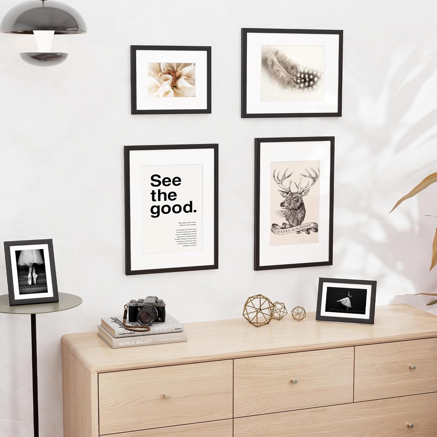 8x10 inch Picture Frame, 8x10 Photo Frames with 5x7 Removable Mat - High Definition Plexiglass - Vertical and Horizontal Display - Wall Hanging Frame - Black, 12 Pack