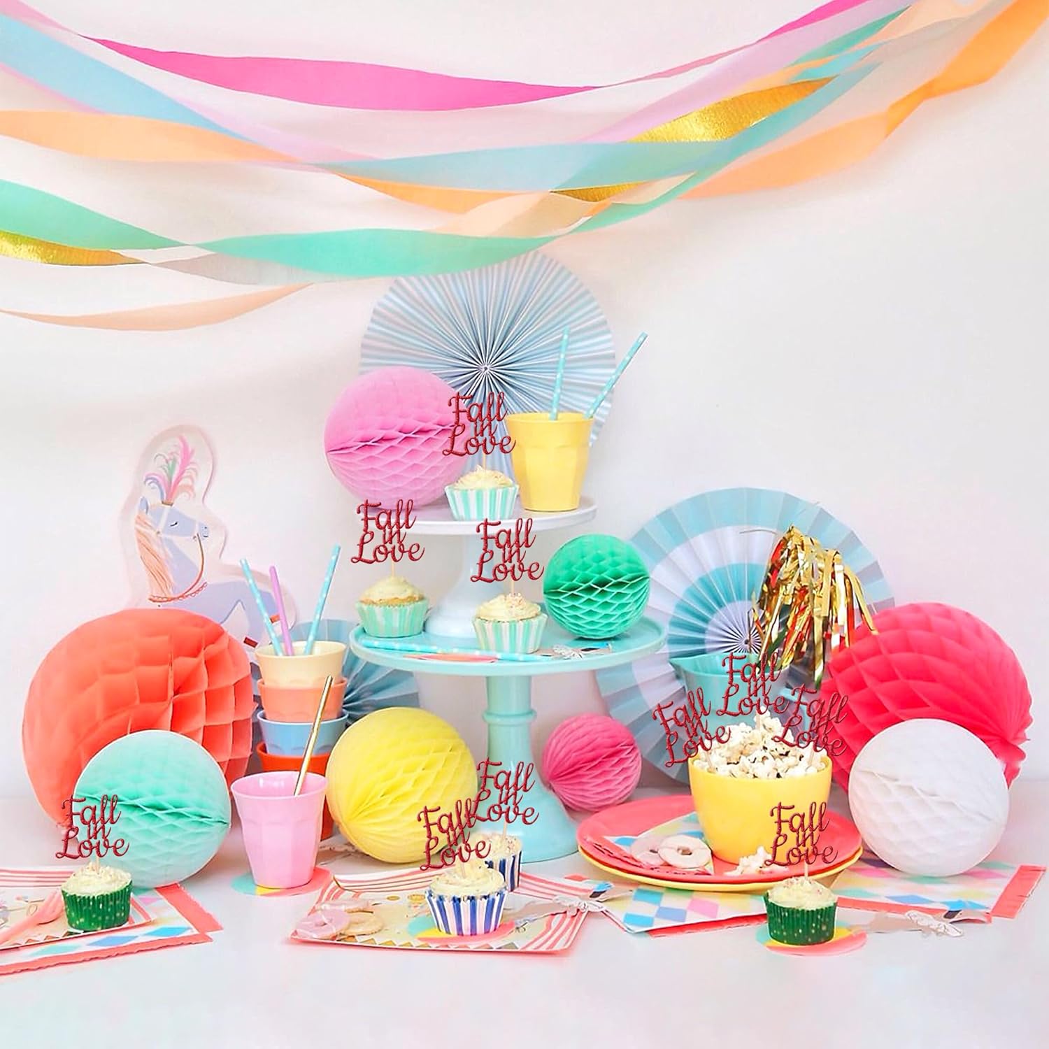 24 PCS Fall in Love Cupcake Toppers Glitter Fall Theme Party Cupcake Picks Bridal Shower Cupcake Decorations for Autumn Wedding Engagement Anniversary Birthday Party Cake Decorations Supplies Red
