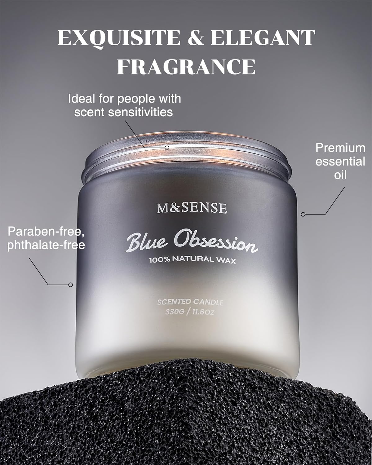 M&SENSE Amber Lavender Scented Candle for Men, 11.6oz 2 Wick Large Natural Soy Wax 70 Hours Highly Scented Home Fragrance