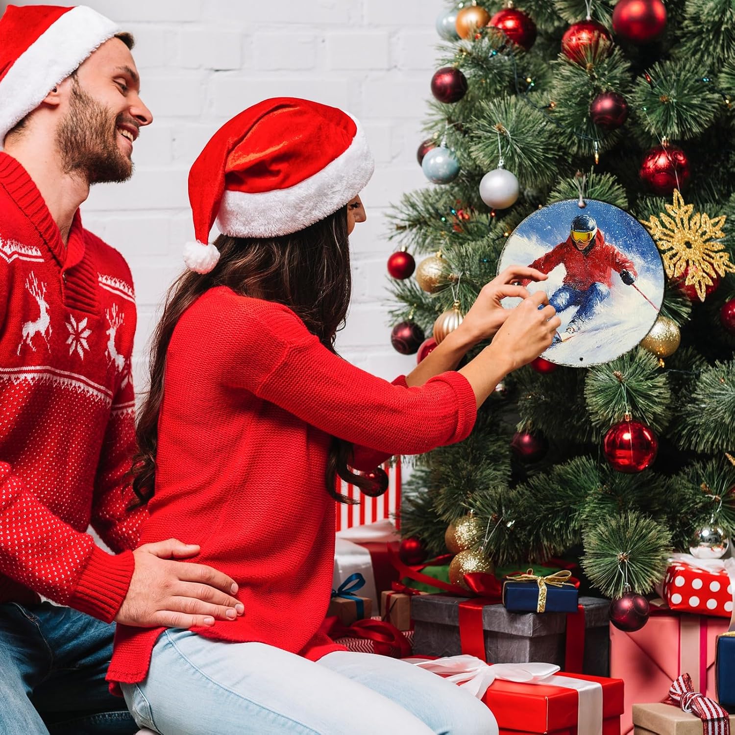 Round Ski Vintage Metal Sign Skiing Sign, Office Sign Home Décor Ski Lodge Décor Cabin Tin Sign 8 * 8 in