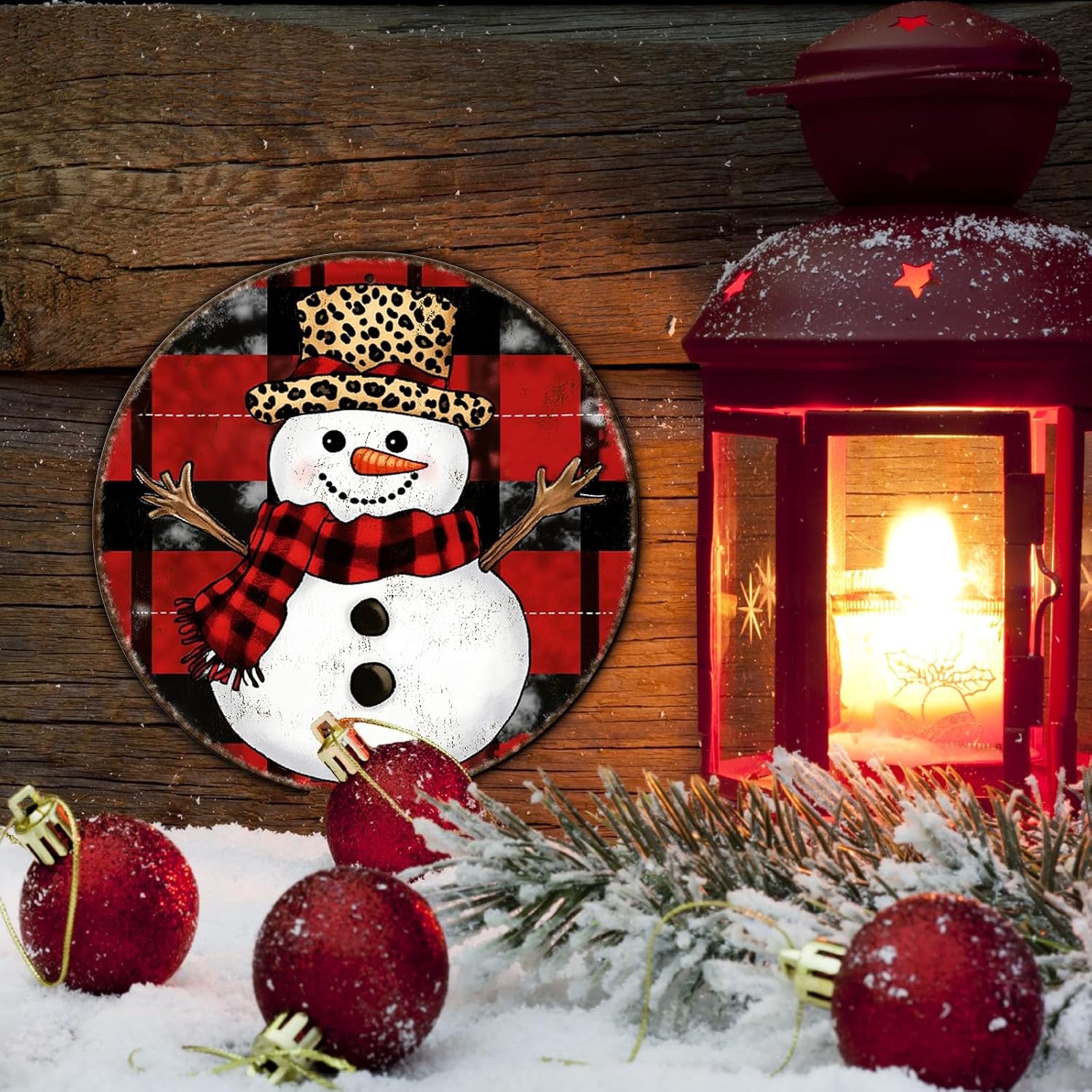 Round Christmas Snowman Tin Sign Vintage Snowman Sign Rustic Wall Decor For Christmas Home Fireplace And Holiday Gatherings Retro Sign 8 * 8 in