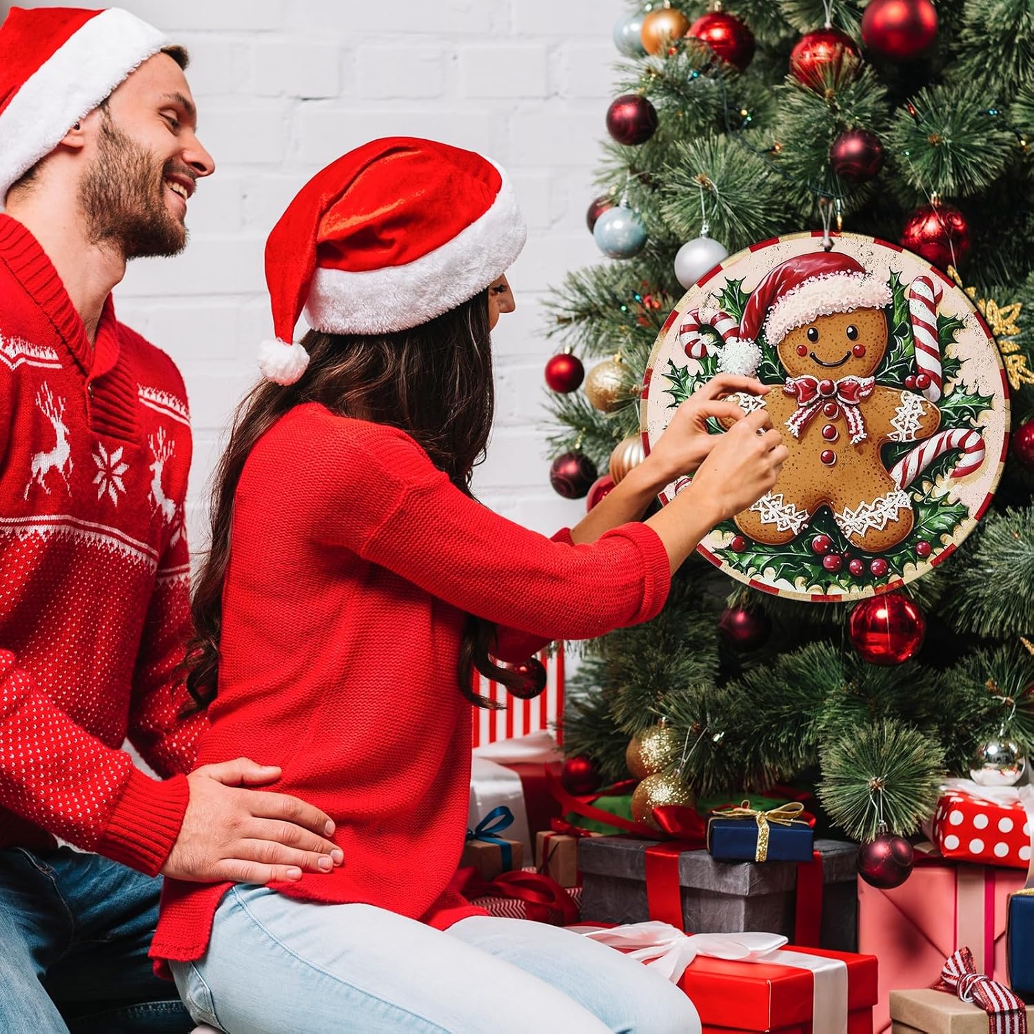 Round Christmas Metal Tin Sign Rustic Wall Decor Gingerbread Man Vintage Tin Sign Candy Canes Christmas Tin Sign for Home Garden Kitchen Bar Cafe Restaurant Garage Wall Decor 12 * 12 in