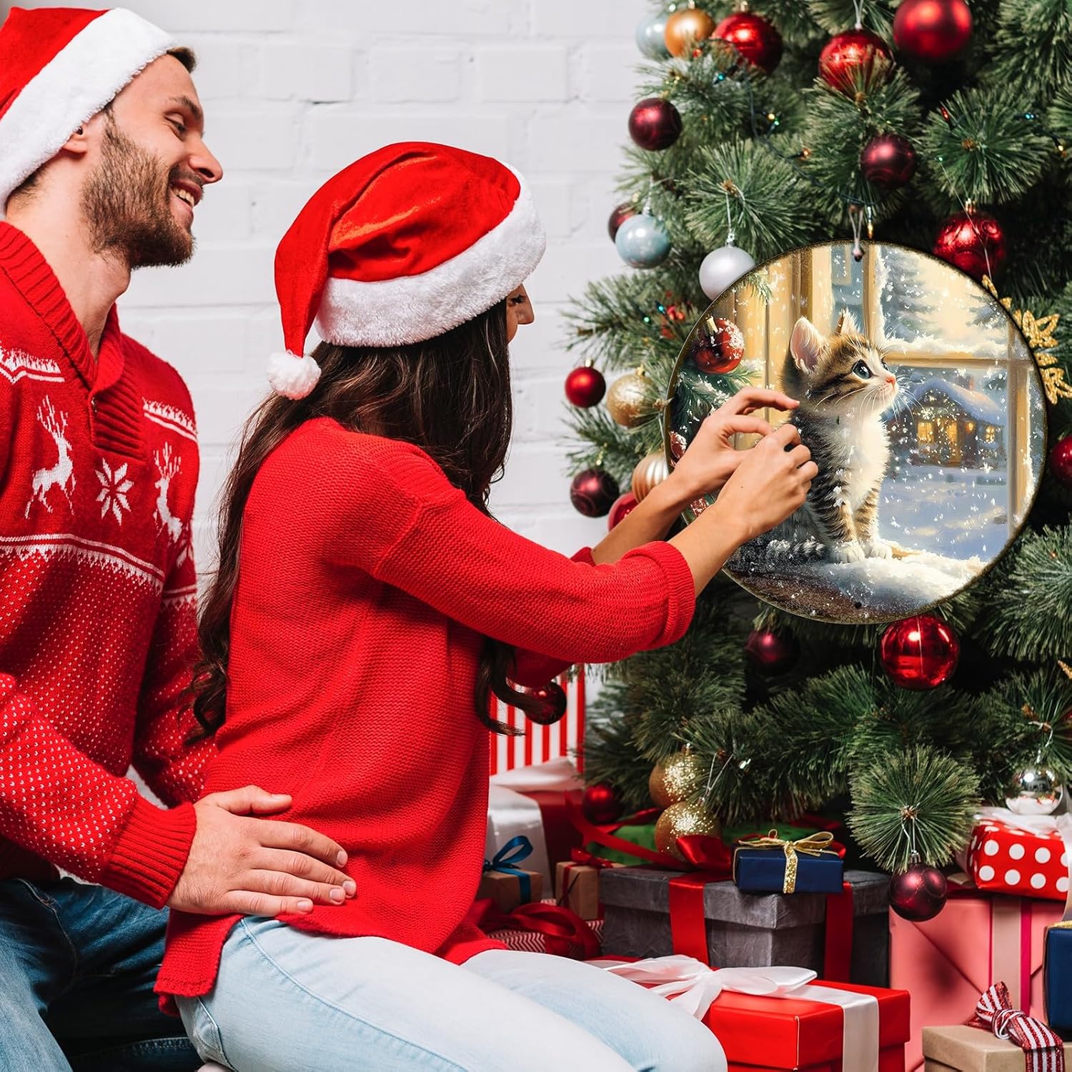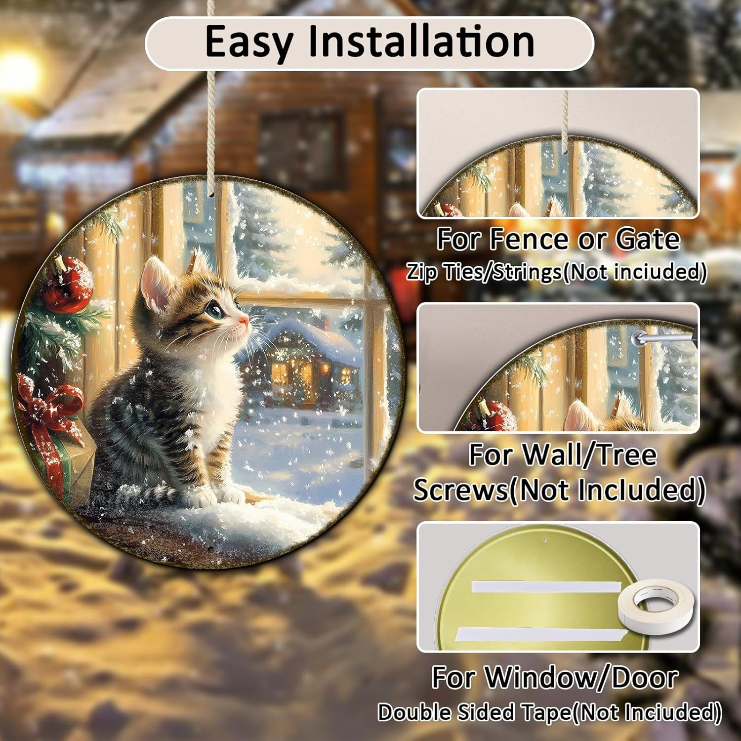 Round Christmas Sign Cats Vintage Metal Sign Christmas Kitten Retro Tin Sign Wall Decor for Home Office Bar Club Man Cave 12 * 12 in