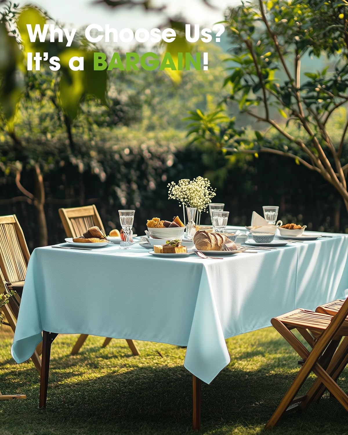 - FIT ANY SHAPE OF TABLES: Pureegg disposable tablecloths for rectangle tables measure 54" x 108" and fit tables up to 8 feet long. These plastic table cloths also fit smaller tables or various kinds of tables, like folding buffets, outdoor picnic, kitchen, and dining tables.