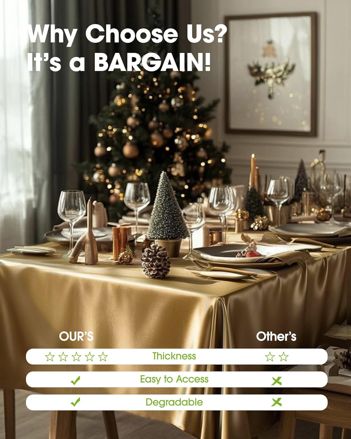 - FOR ALL OCCASIONS: With the universal size and multiple color options, our disposable table cloths are widely applicable to kinds of events, parties, church functions, work events, one-time use, and even practical everyday use.