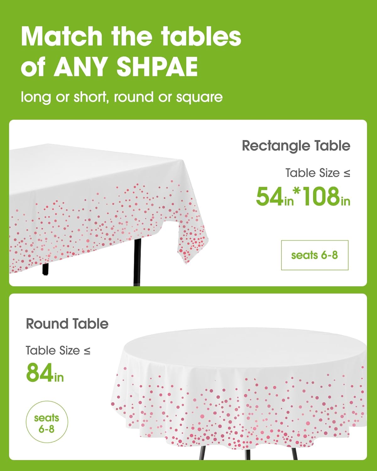 - FOR ALL OCCASIONS: With the universal size and multiple color options, our disposable table cloths are widely applicable to kinds of events, parties, church functions, work events, one-time use, and even practical everyday use.