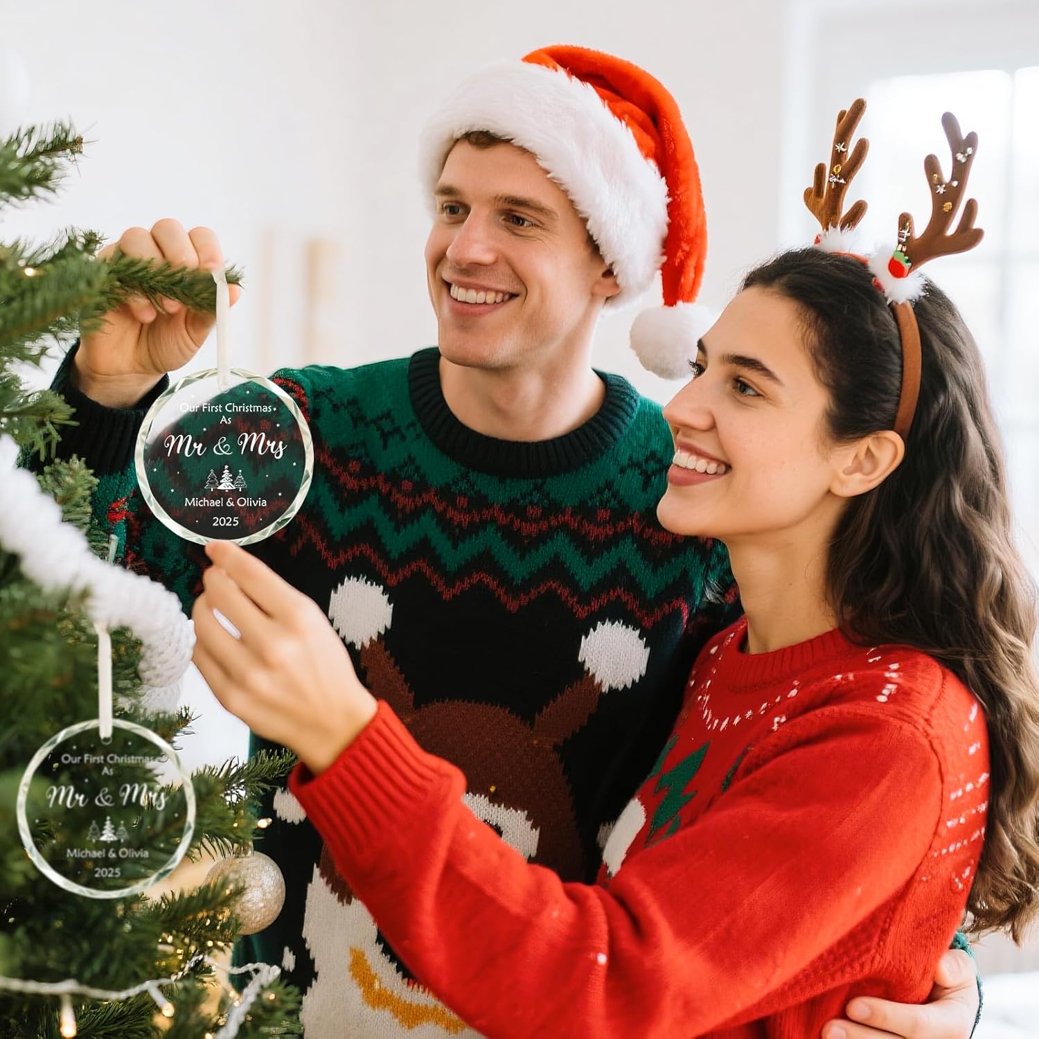 - CUSTOM CHRISTMAS ORNAMENTS FOR COUPLES: Click "Customize Now" to start personalize your own ornament special with name, date etc. Let this ornament express your warmest and most genuine wishes to a newlywed couple embarking on the beautiful journey of marriage. For your future mate, this personalized christmas ornament 2025 will commemorate the important things in life & create lasting and loving memories.