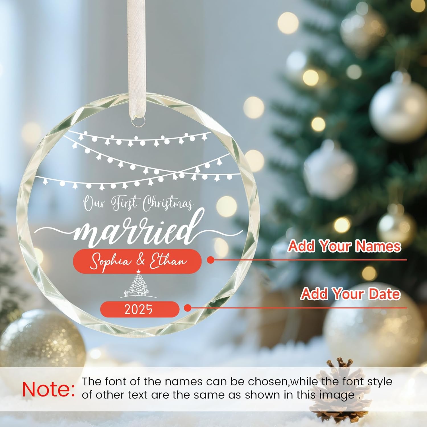 - CUSTOM CHRISTMAS ORNAMENTS FOR COUPLES: Click "Customize Now" to start personalize your own ornament special with name, date etc. Let this ornament express your warmest and most genuine wishes to a newlywed couple embarking on the beautiful journey of marriage. For your future mate, this personalized christmas ornament 2025 will commemorate the important things in life & create lasting and loving memories.