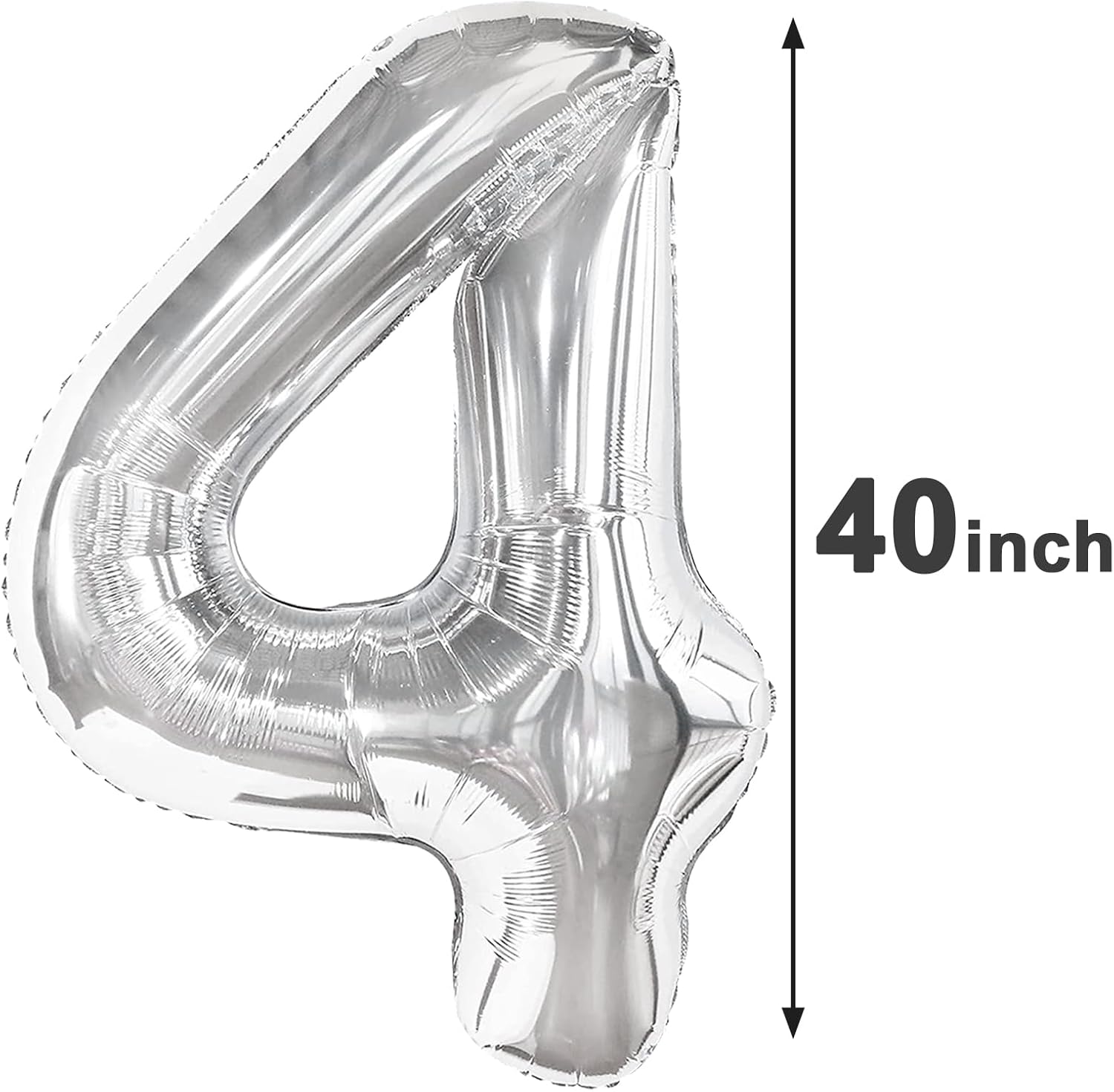 - 1.【Elegant Understated Silver Number Balloons】: You will receive an uninflated 40 inch 4 balloon number. Big number balloons are always the best statement of romance and surprise. Number foil balloons symbolize vitality exoticism, adding glamour to birthday parties. Bright metallic silver and huge size make 4 silver balloons a highlight of special parties. Choose one or more numbers from 0-9 number balloon, and use 4 14 24 34 44 54 64 84 94 birthday balloons to create a lively and charming party!