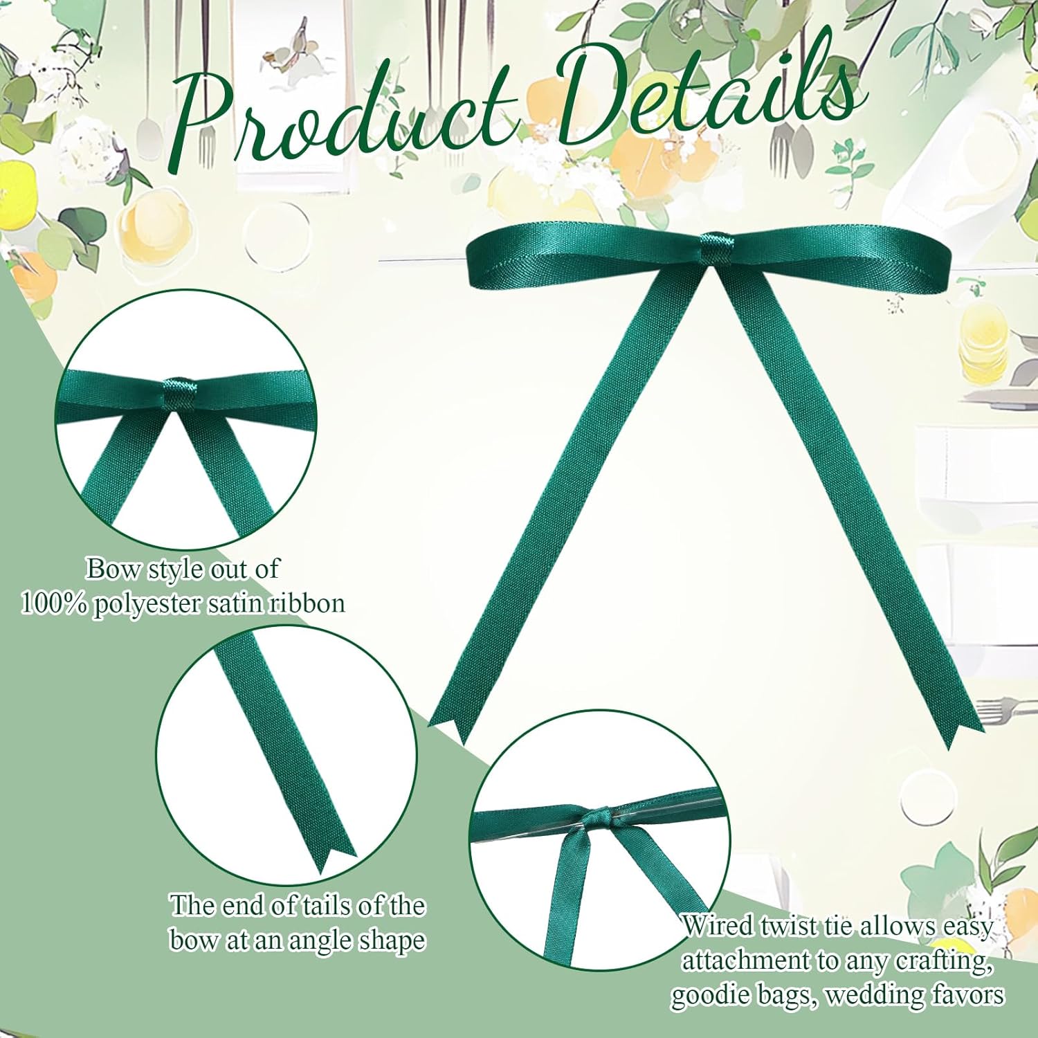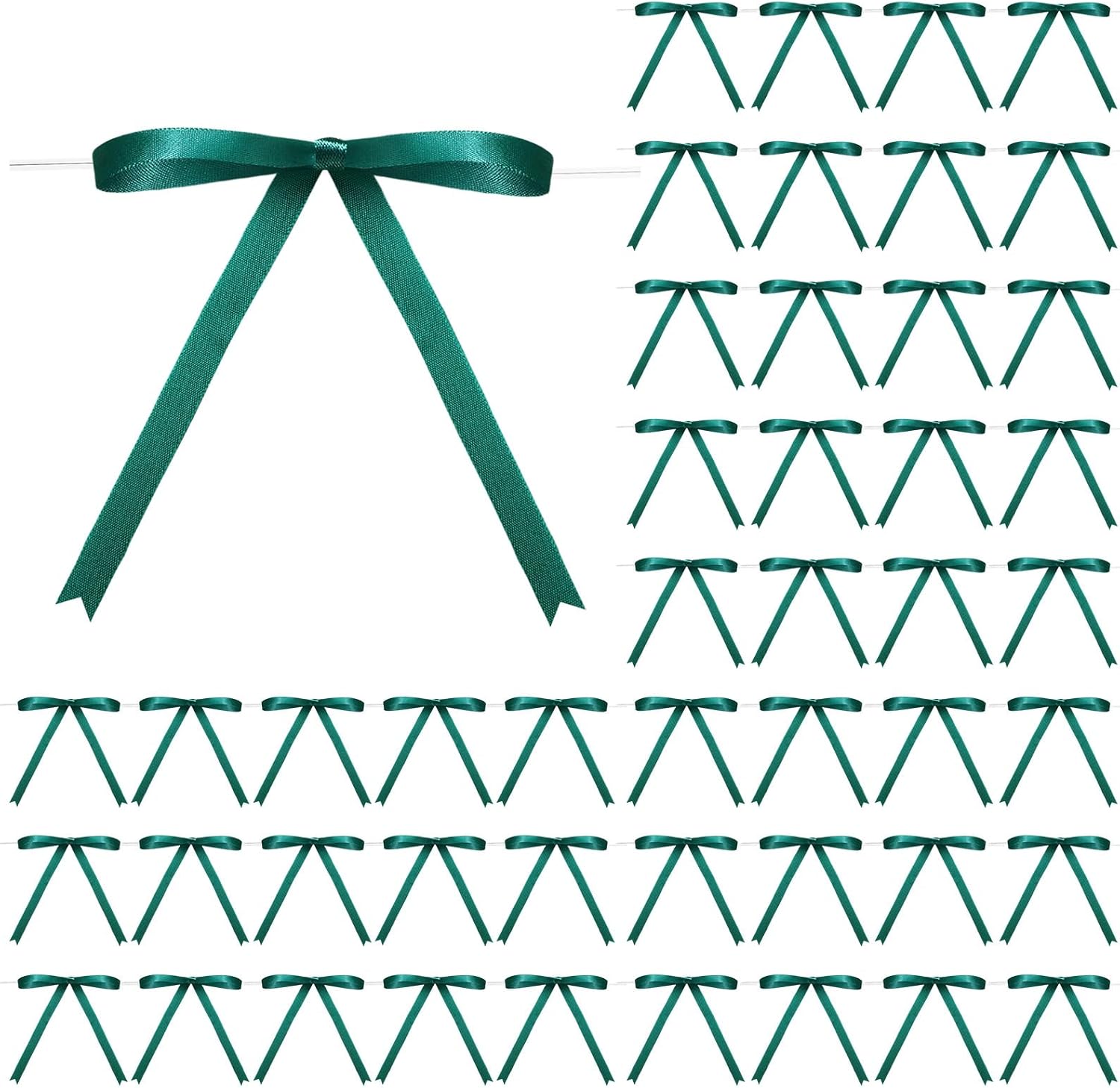 Riceshoot 100 Pcs Twist Tie Bows Bulk 5x7 Inch Satin Ribbon Bows for Gift Wrapping Cake Treat Bags Craft DIY Gift Wedding Baby Shower Birthday Party (Green)