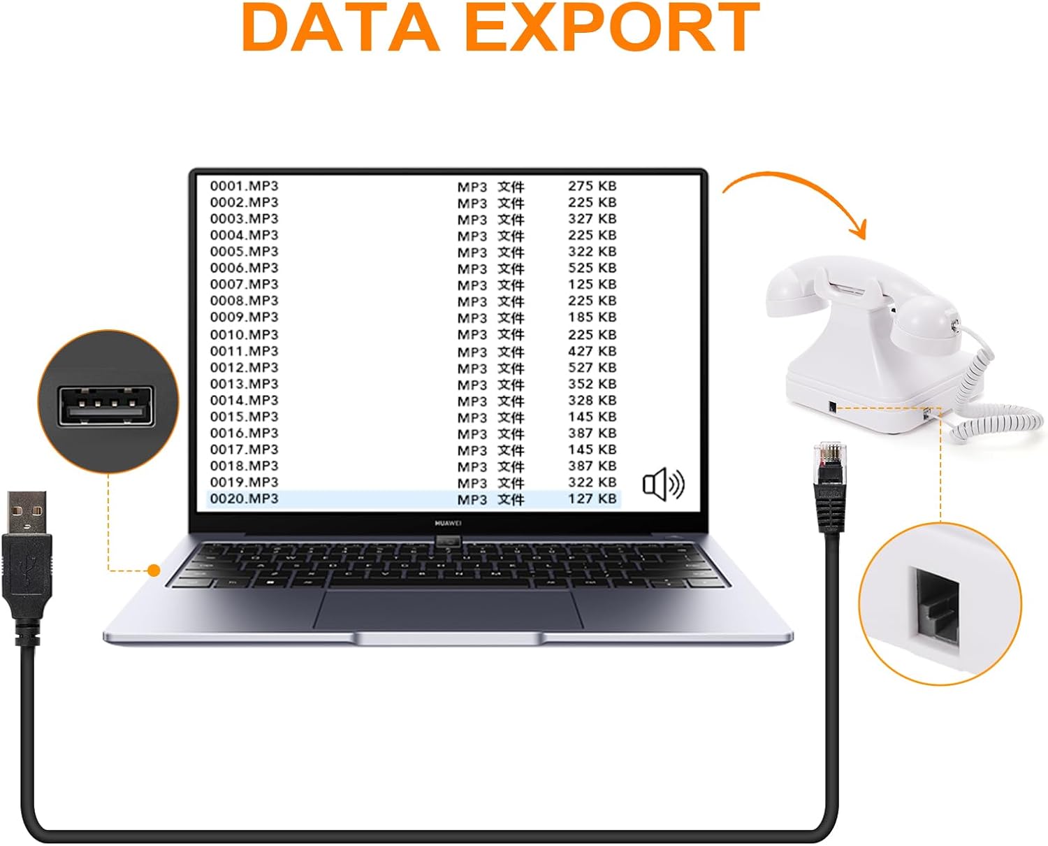 - 【Easy to Use】 Pick up the handset, according to the built-in voice prompt button can save or play back the recording, easy to operate, after recording, connect the data cable to the guest book phone and the computer can export all message data storage.