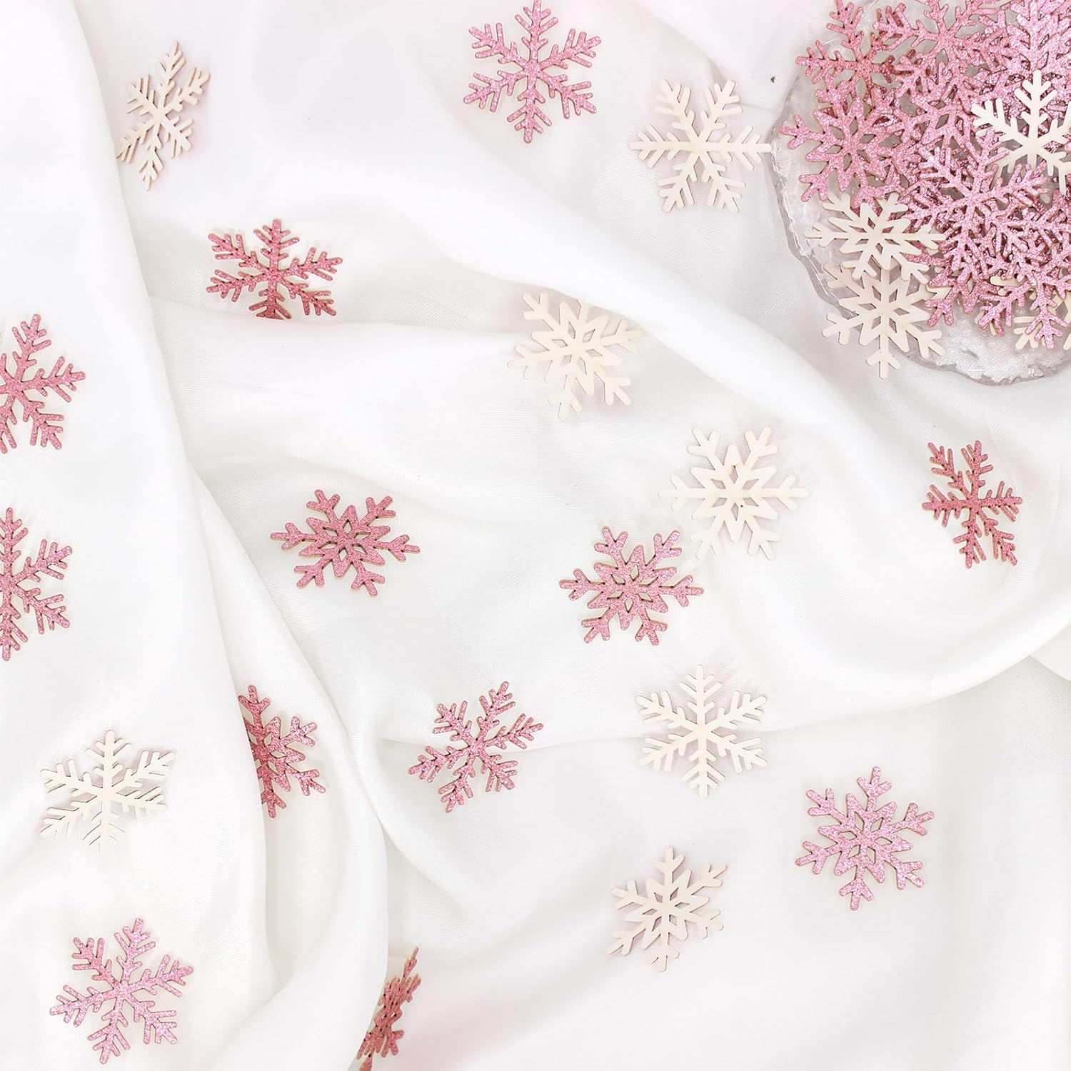 200PC Pink Glitter Snowflake Confetti Winter Onderland Decorations Paper Snowflakes Table Scatter for Winter Wonderland Birthday Baby Shower Party Decor