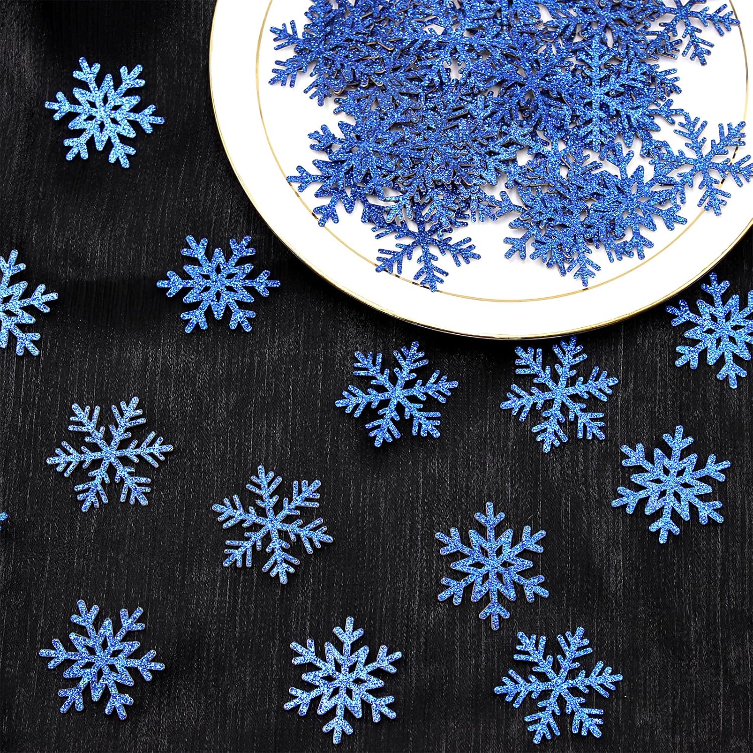 - Great addtion to your winter wonderland party:the paper snowflakes confetti are shiny royal blue color,perfect for winter party christmas new year baby shower bachelorette birthday party decorations.