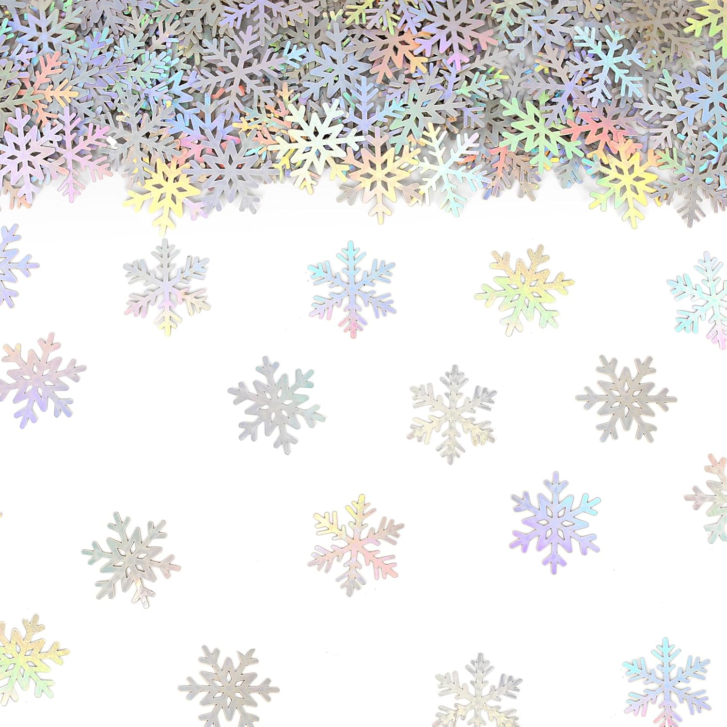 200PC Iridescent Snowflakes Confetti for Winter Wonderland Party Decorations Snowflake Table Scatter for Christmas Baby Shower Wedding Birthday Party Decor