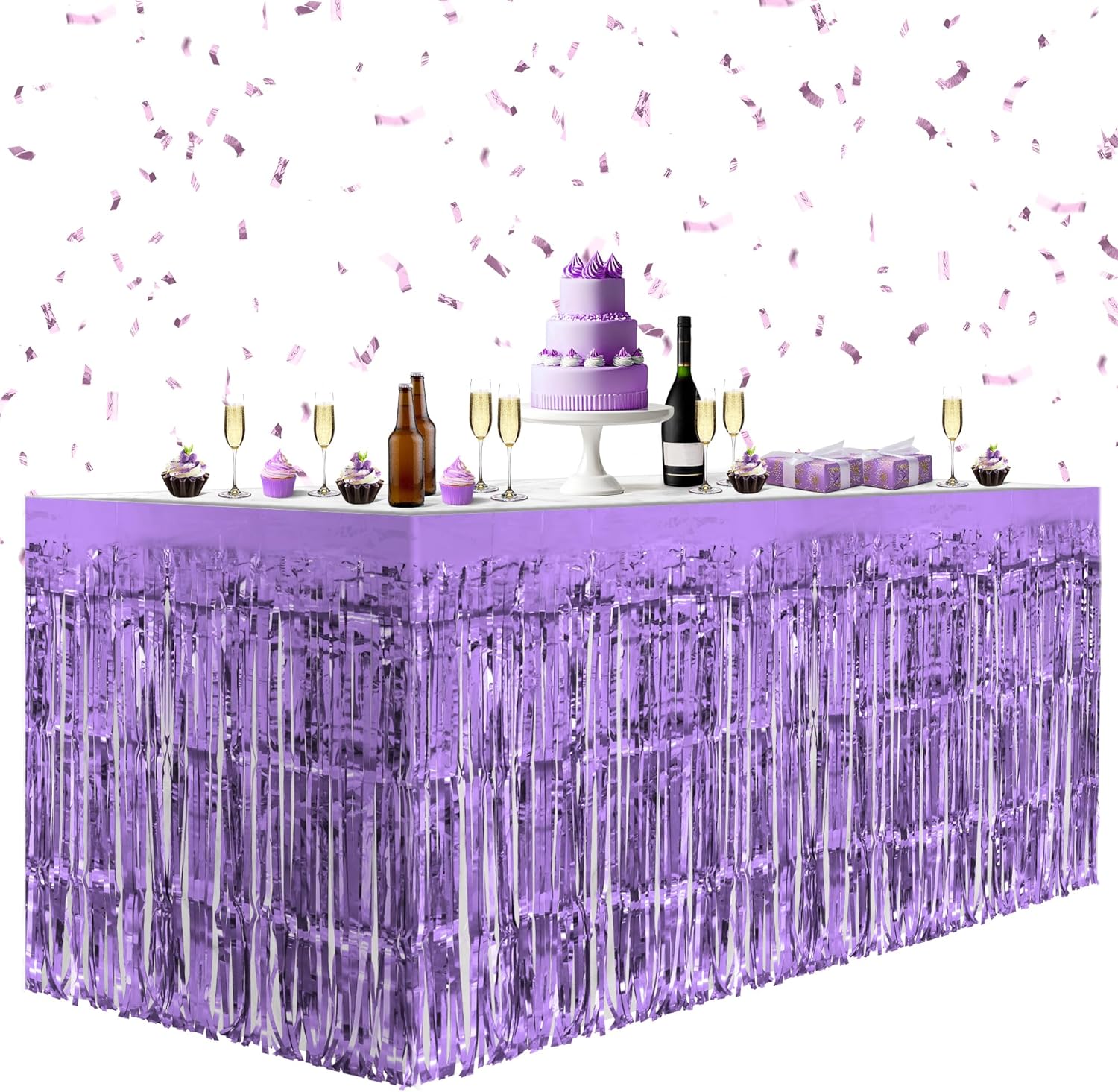 4 Pack Light Purple Table Skirts, 29x108" Metallic Foil Tinsel Fringe Table Skirts for Rectangle Tables Streamer Curtains Backdrop, Party Decorations for Birthdays Weddings Holidays