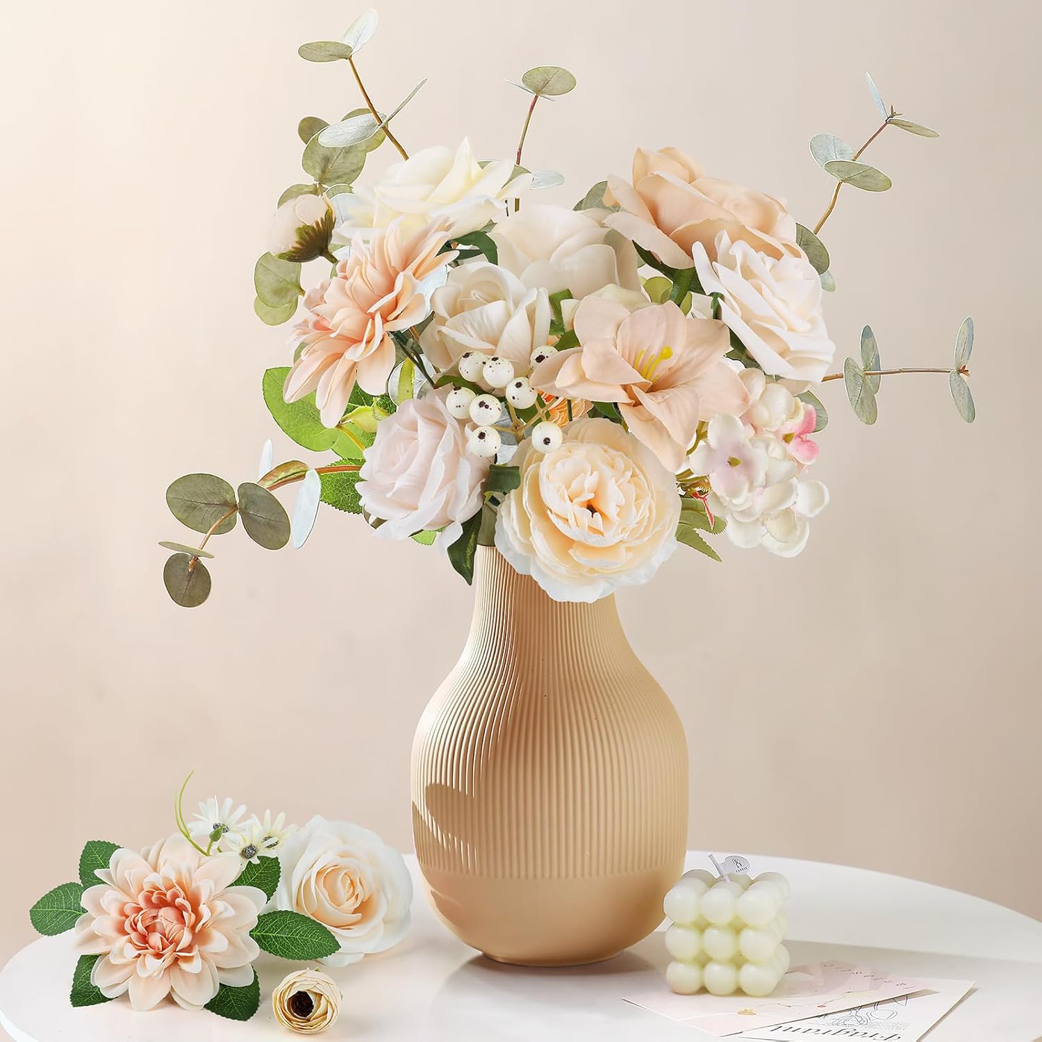 AmyHomie Nude Color Artificial Flowers Combo Silk Mix Peony Rose Fake Flowers w/Stem for DIY Wedding Bouquets Centerpieces Arrangements Table Fall Decor Party Bridal Baby Shower Home Decorations