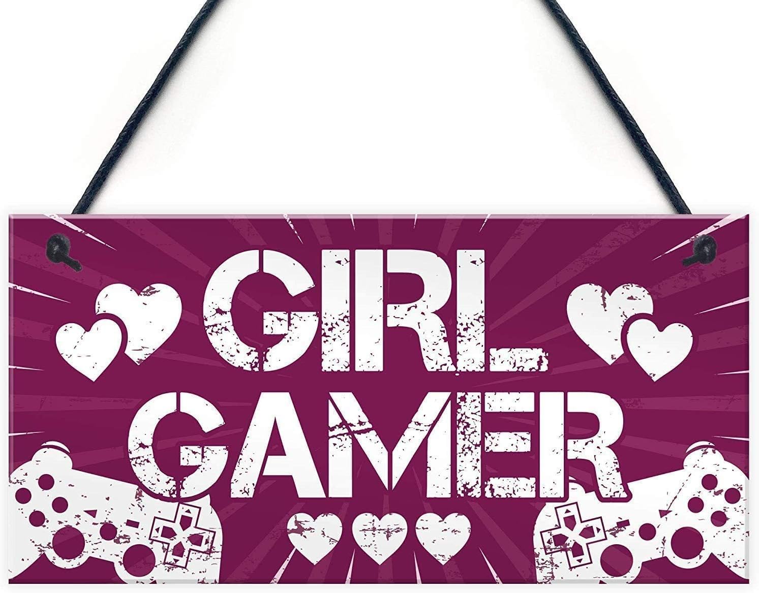 Rustic Wooden Signs for Girl Gamer Bedroom - Novelty Door Sign, Wall Art Decor for Kitchen, Cafe, Pub - Gamer Gifts for Women Birthday - 6x12 Inch