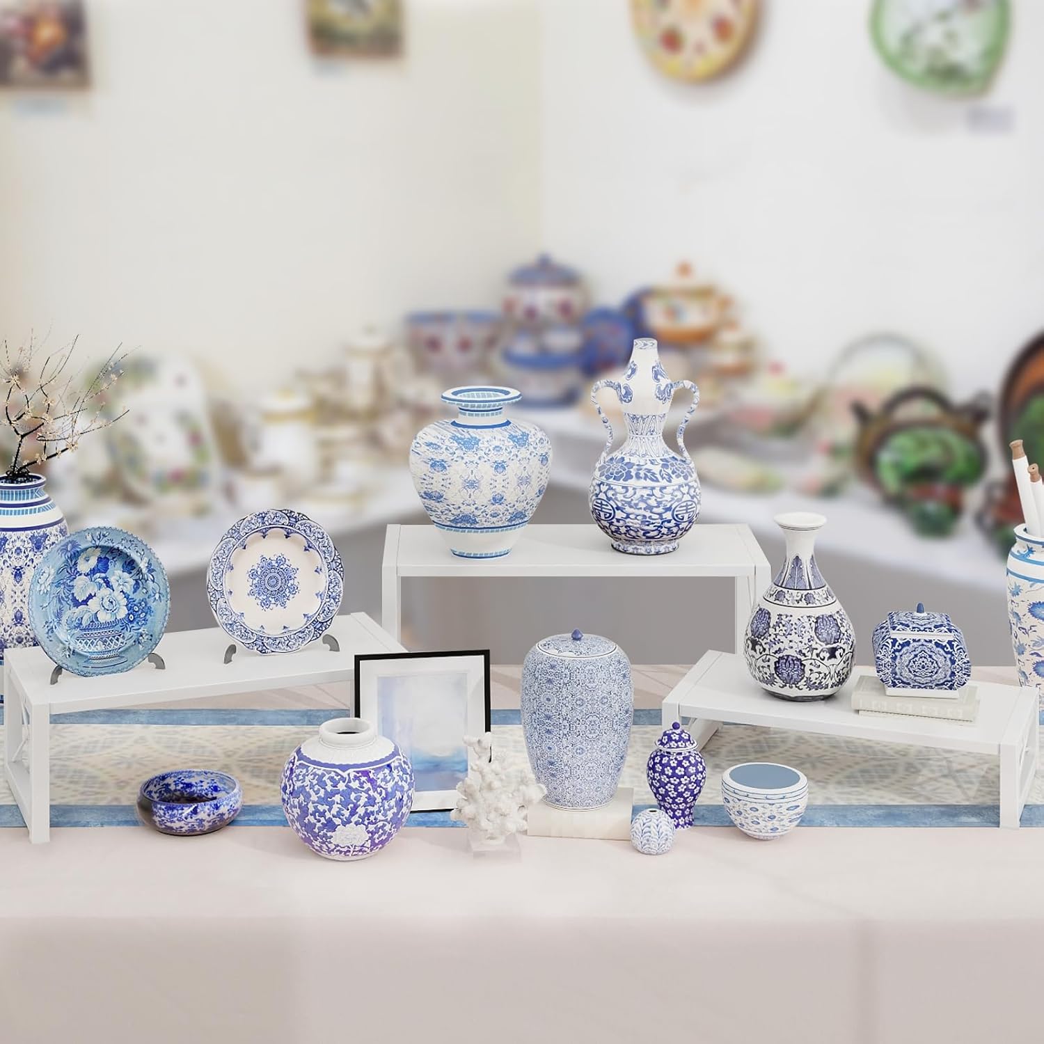 - 【Multifunctional】From cupcakes to succulent plants, cosmetics to shot glasses crafts, jewelry to toys, collectibles to retail goods, all of your most popular collecting will look their best in these wooden risers! Wooden display risers make efficient use of your curio cabinet, showcase, retail store space, trade shows countertop, buffet restaurant desktop, dressing table, etc.