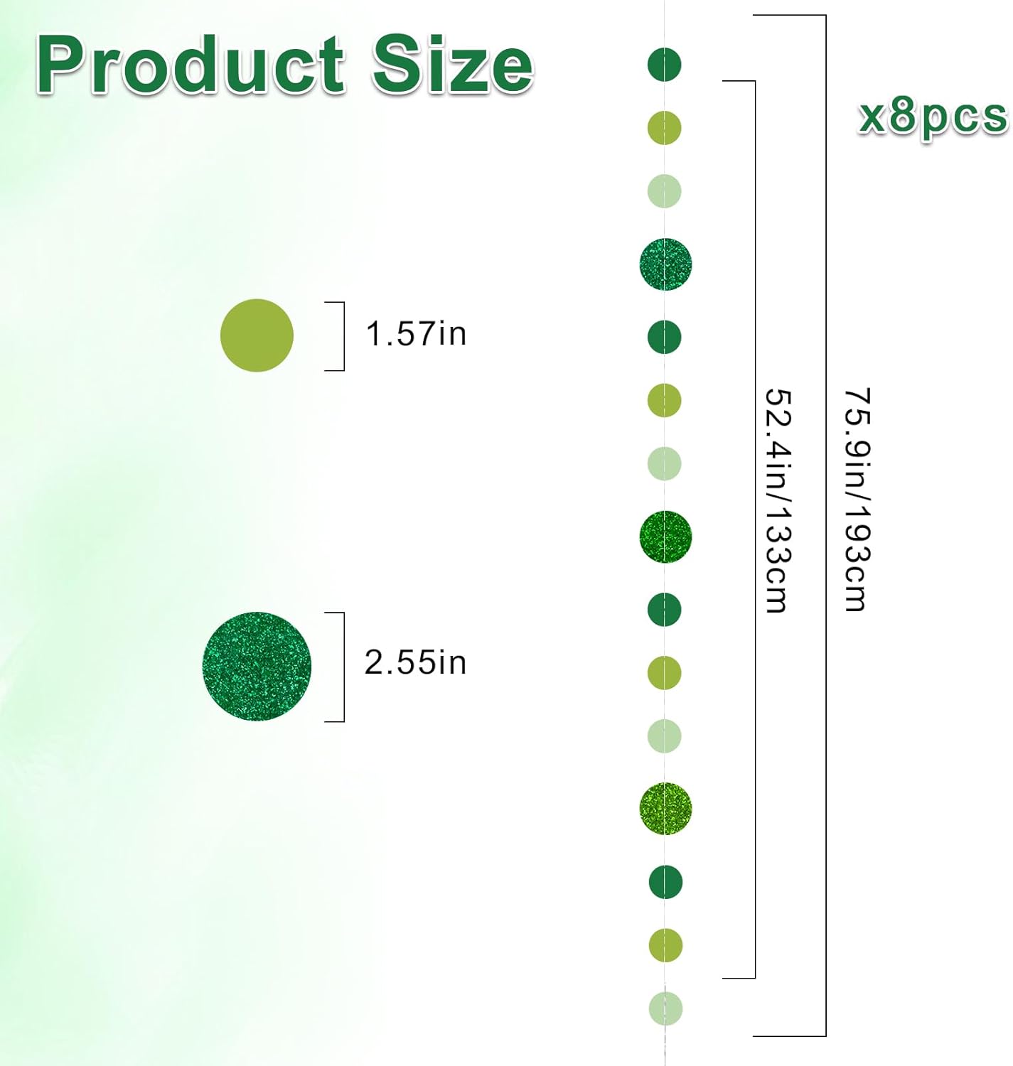 8 Pack Green Glitter Dot Garland, Hanging Circle Streamers Banner, Backdrop Hanging Decorations for Easter, St. Patrick’s Day, Spring Celebrations, Birthday Parties, Baby Showers, Weddings and More